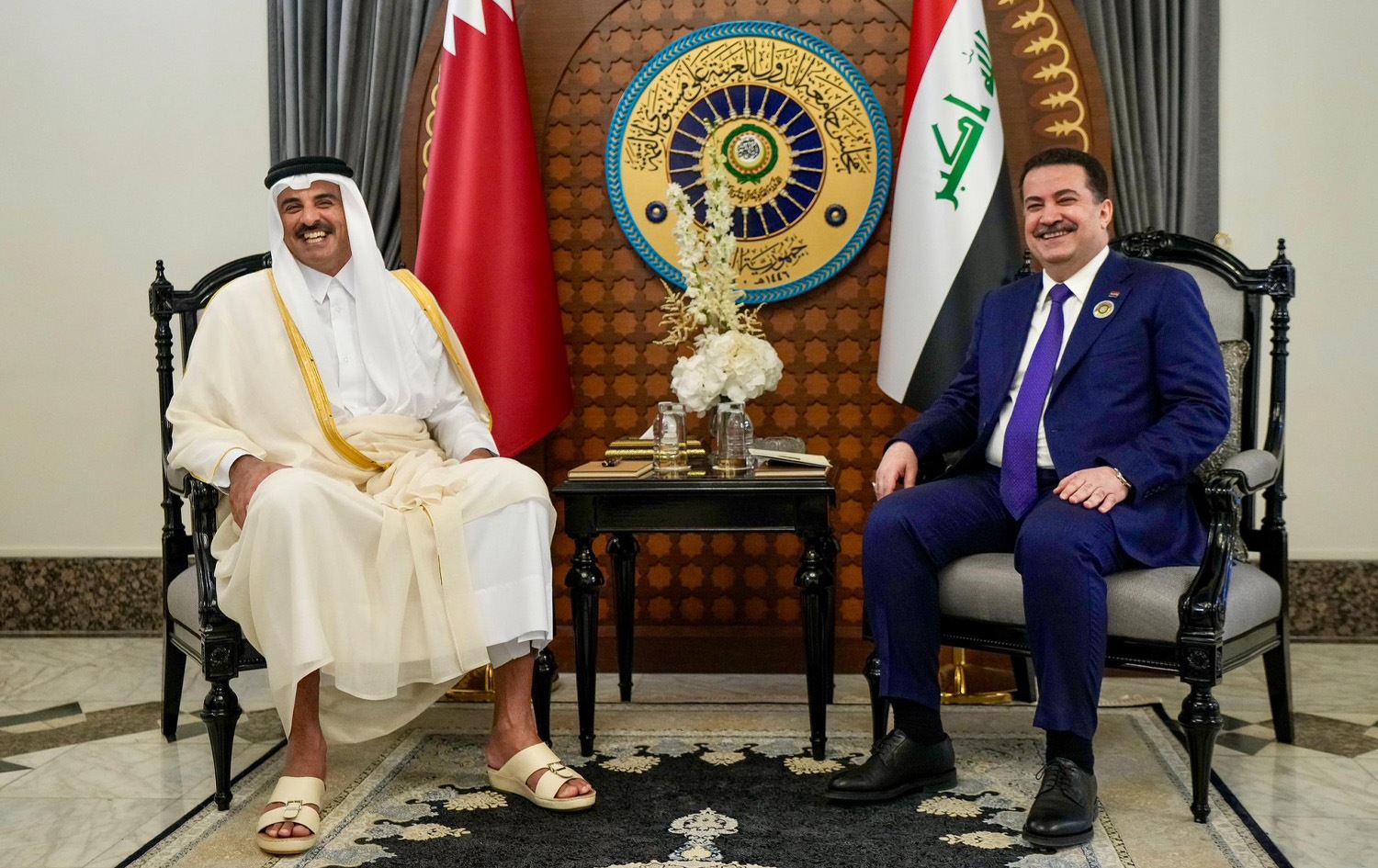 ئاژانسی هەواڵی قەتەریش بڵاویکردەوە: "شێخ تەمیم بن حەمەد ئال سانی، میری وڵات، ئەمڕۆ بەغدای پایتەختی عێراقی جێهێشت، دوای ئەوەی سەرۆکایەتیی شاندی دەوڵەتی قەتەری لە لووتکەی کۆمکاری عەرەبی کرد."
