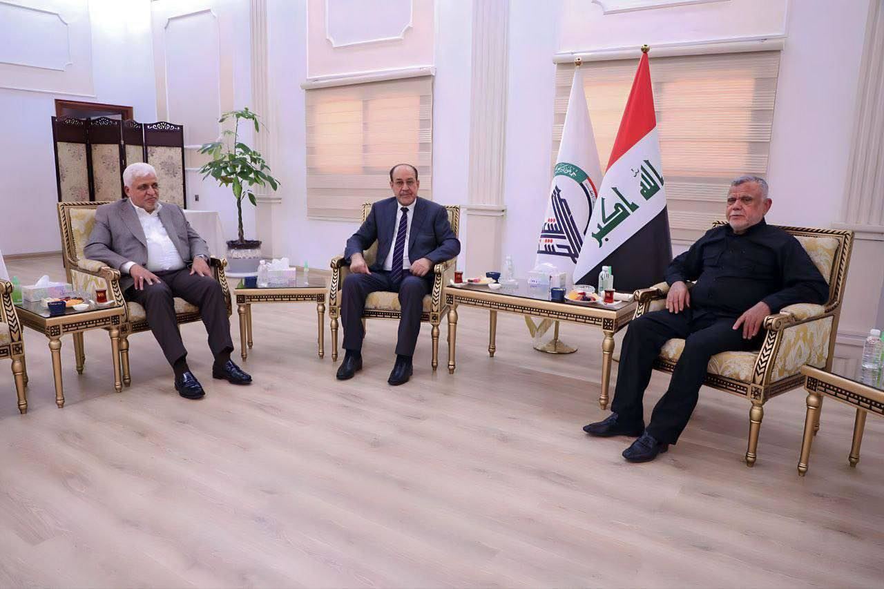 کۆبوونەوەی نووری مالیکی، سەرۆکی هاوپەیمانیی دەوڵەتی یاسا؛ فالح فەییاز، سەرۆکی دەستەی حەشدی شەعبی؛ هادی عامری، سەرۆکی هاوپەیمانیی فەتح.