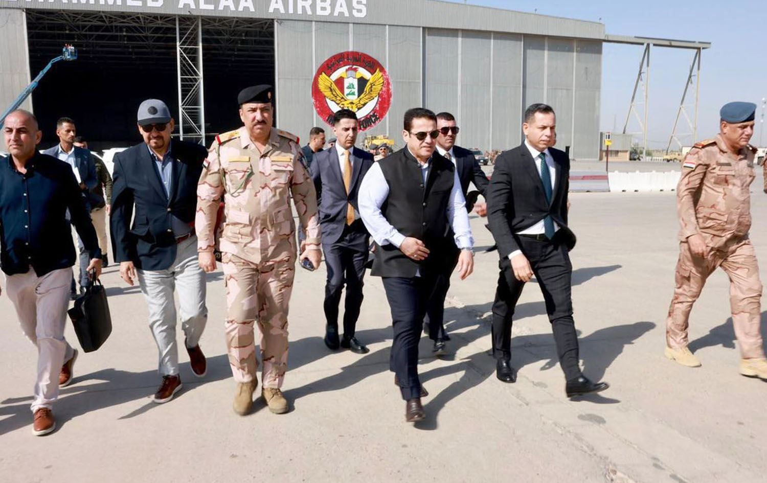 ساتی بەڕێکەوتنی قاسم ئەعرەجی، راوێژکاری ئاسایشی نەتەوەیی عێراق بەرەو هەولێر. وێنە: نووسینگەی راگەیاندنی قاسم ئەعرەجی