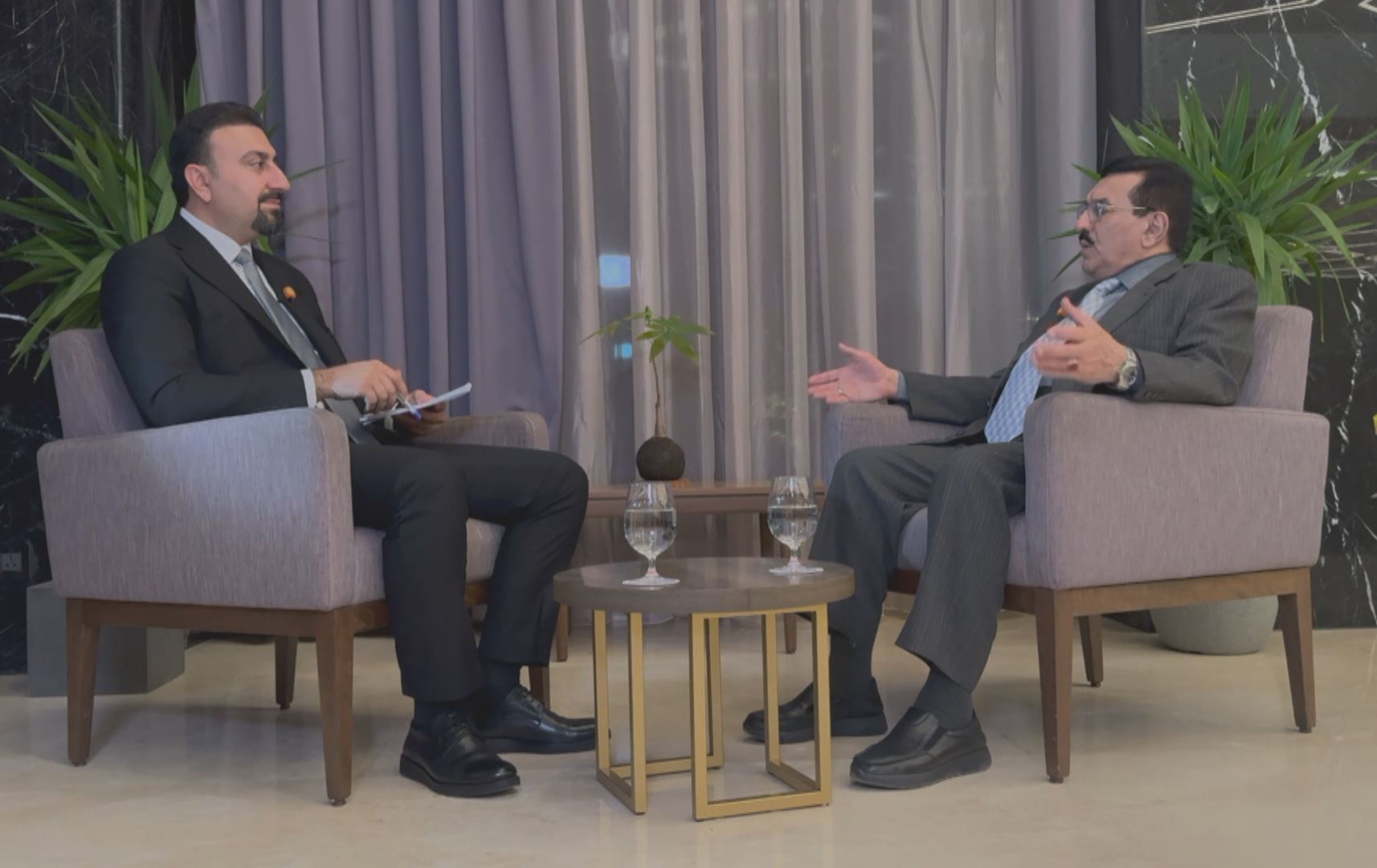 عامر فایز، سەرۆکی هاوپەیمانیی تەسمیم لە هەڤپەیڤینێکدا لەگەڵ مستەفا گۆران، پەیامنێری تۆڕی میدیایی رووداو.