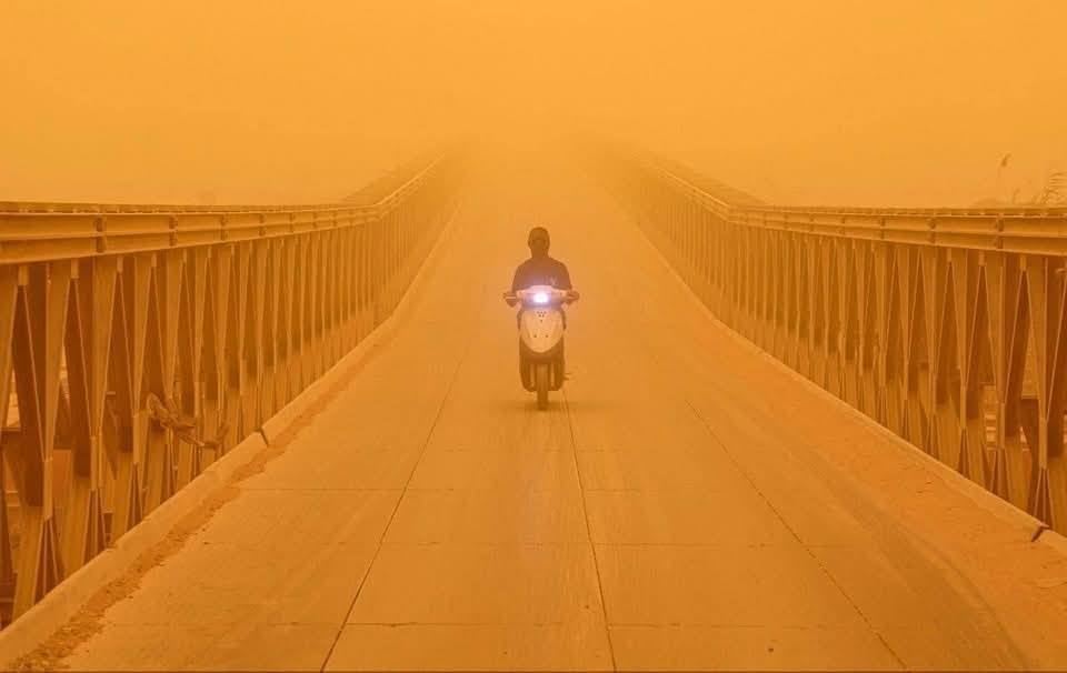 بە گوتەی گوتەبێژی دەستەی کەشناسی، لە ناوچەکانی رۆژئاوای عێراق خۆڵبارینە، ماوەی بینین لەنێوان 2 - 4 کیلۆمەترە.