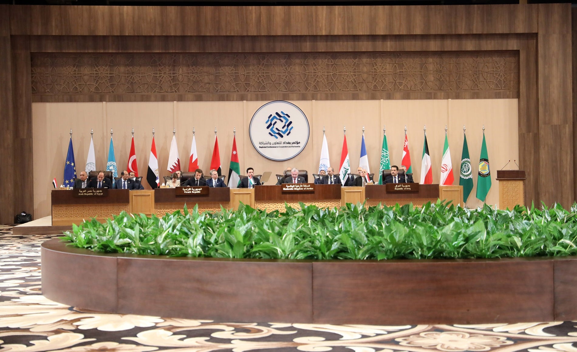 بەرپرسانی باڵای هەردوو نەیاری هەرێمیی سعودیە و ئێران لەگەڵ سەرکردەکانی فەرەنسا، عێراق، تورکیا، میسر، کوێت، بەحرێن، ئیمارات و یەکێتیی ئەوروپا لە کۆنفرانسەکەدا بەشدار بوون، کە بە گوتەی خۆیان، ئامانجیان پێشاندانی "پشتیوانییە بۆ سەروەری، ئاساییش، سەقامگیری، پڕۆسەی سیاسی و ئابووری و بەرەوپێشچوونی عێراق."