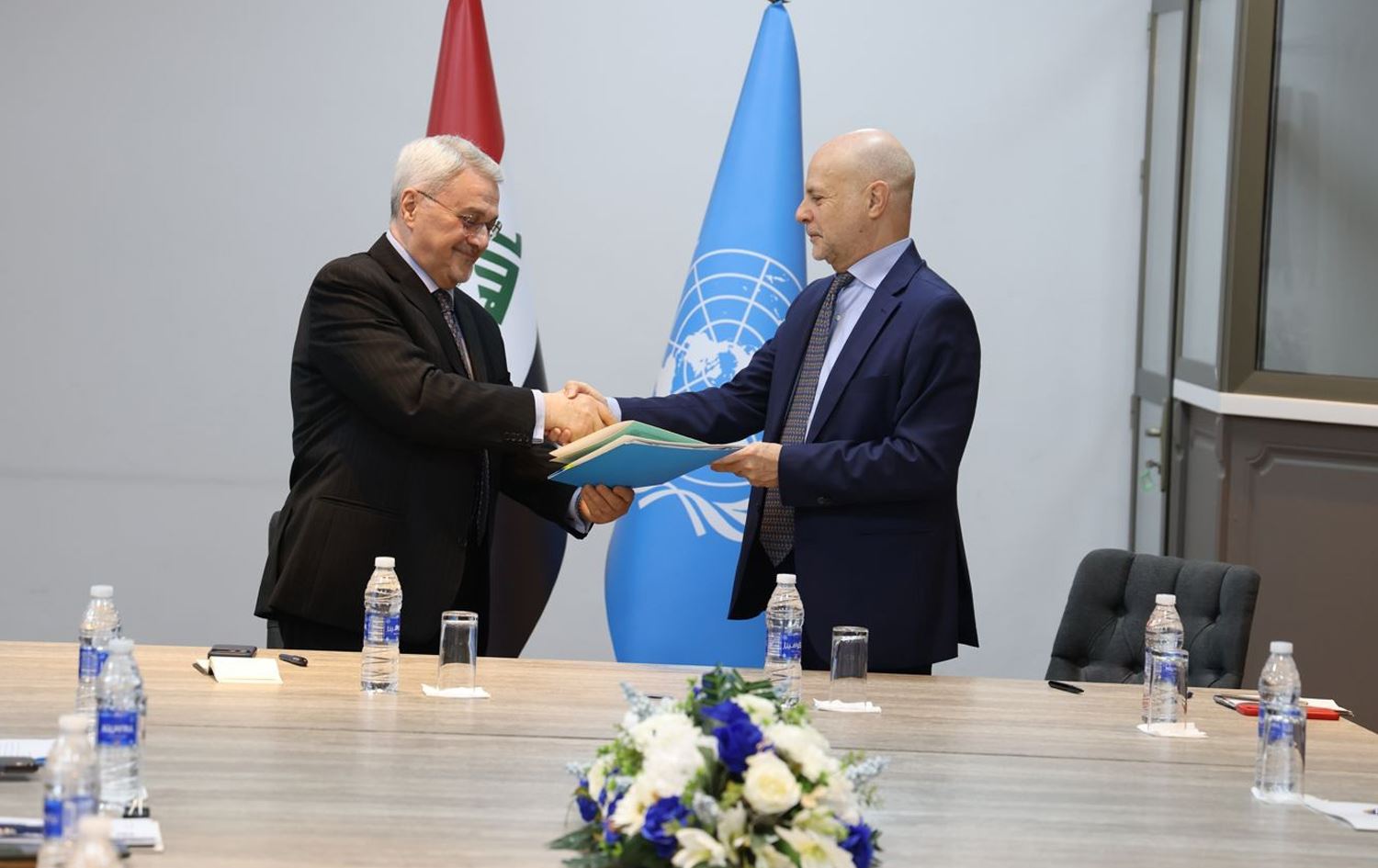 کلاودیۆ کۆردۆنی، جێگری نێردەی تایبەتی نەتەوە یەکگرتووەکان بۆ عێراق بۆ کاروباری سیاسی و هاریکاریی هەڵبژاردن، لەبری یونامی و محەممەد بەحرلعلوم، بریکاری وەزارەتی دەرەوەی عێراق بۆ پەیوەندییە دوولایەنەکان، لەبری حکومەتی عێراق واژۆی بەڵگەنامەکەیان کردووە.