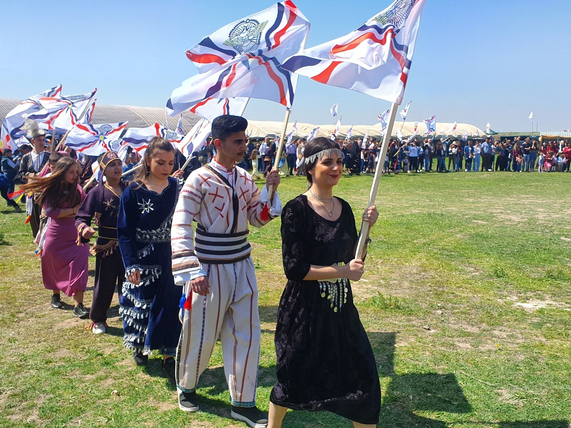 دیمەنێکی جەژنی ئەکیتۆ لە رۆژئاوای کوردستان؛ کچان و کوڕانی مەسیحی بە جلوبەرگی کولتوورییانەوە دەردەکەون.
