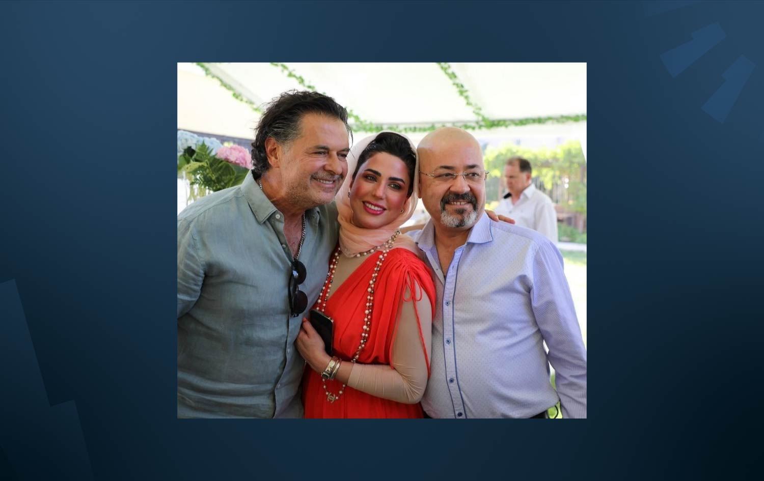وێنەی سێیەمیان راغب عەلامە و مەیسەم روبەیعیی هاوژینی باڵیۆزەکەی عێراق لە باوەشپێداکردنەوە نزیکە و گۆرانیبێژە لوبنانییەکە ناوقەدی هاوژینی باڵیۆزەکەی عێراقی گرتووە.