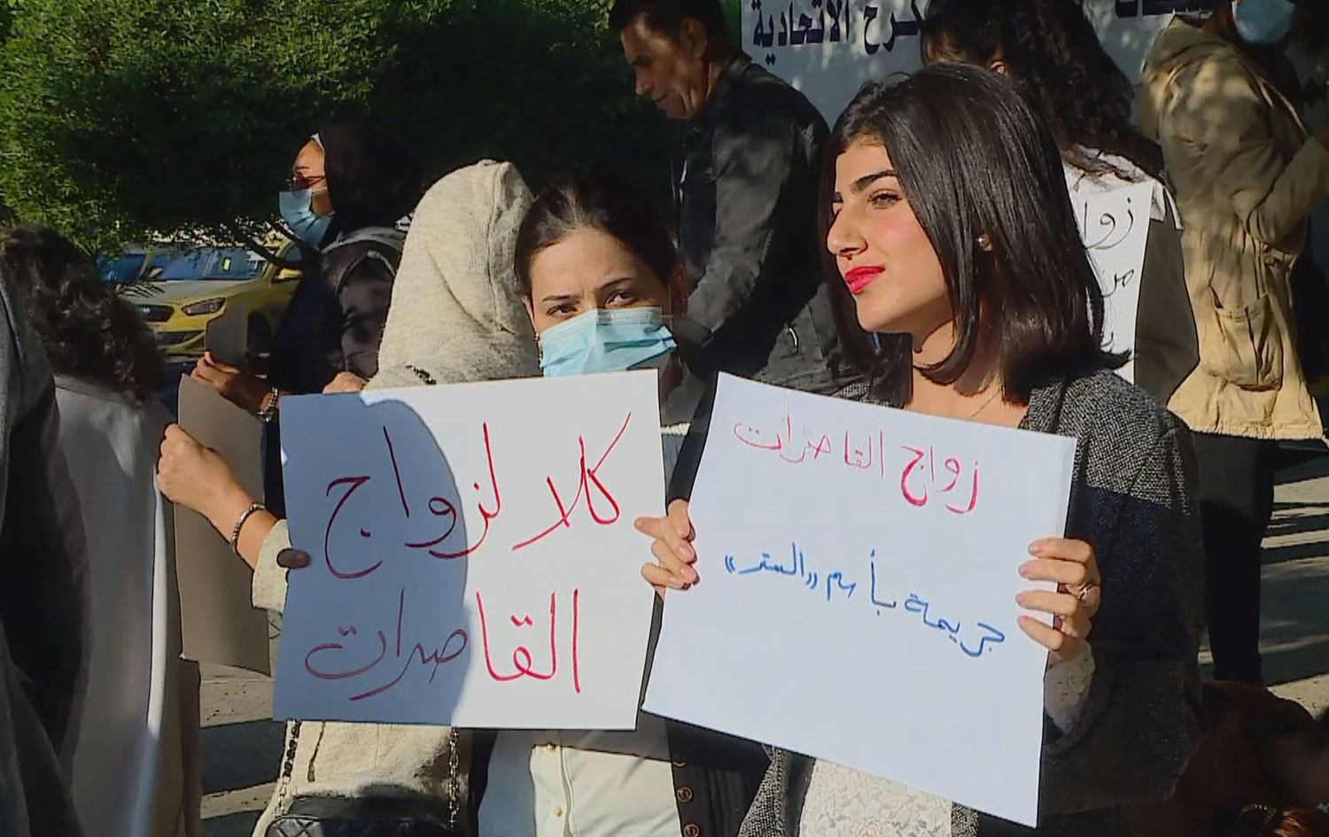 بەشێک لە چالاکوانانی مافەکانی ژنان چوونە بەردەم دادگای کازمییە تاوەکو رێگری لە بەشوودانی کچێکی تەمەن 12 ساڵان بکەن. چالاکوانێک دەڵێت، نازانێت چی بە ئەو باوکە بڵێت کە ئەو کارە دەکات.