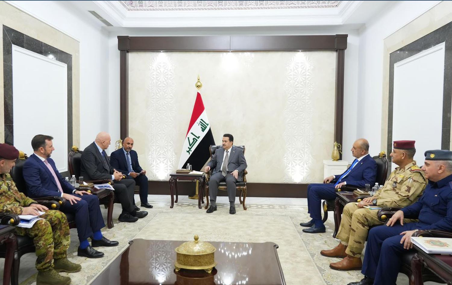 کۆبوونەوەی محمد شیاع سوودانی، سەرۆکوەزیرانی عێراق و گویدۆ کرۆزێتۆ، وەزیری بەرگریی ئیتاڵیا. وێنە: نووسینگەی راگەیاندنی سوودانی