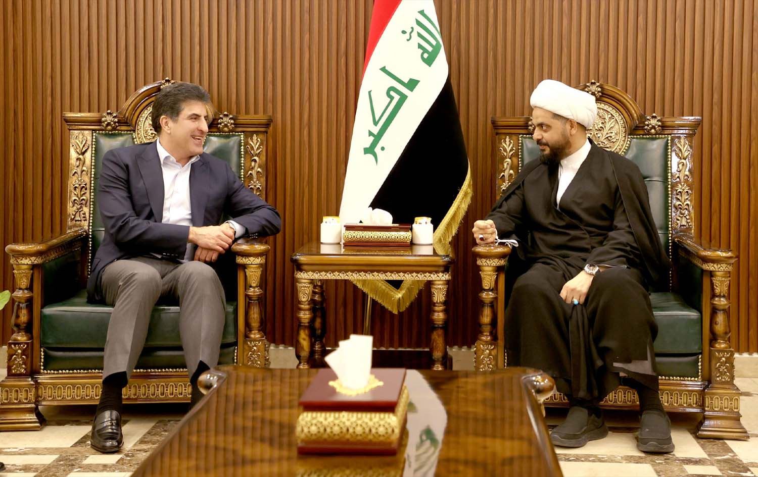 رۆژی سێشەممە 22-11-2022، نێچیرڤان بارزانی، سەرۆکی هەرێمی کوردستان لە بەغدا لەگەڵ قەیس خەزعەلی، سەرۆکی عەسائیبی ئەهلی حەق کۆبووەوە و پێکەوە لەبارەی دوایین پێشهاتە سیاسی و ئەمنییەکانی عێراق و شەڕی دژە تیرۆر قسەیان کرد.