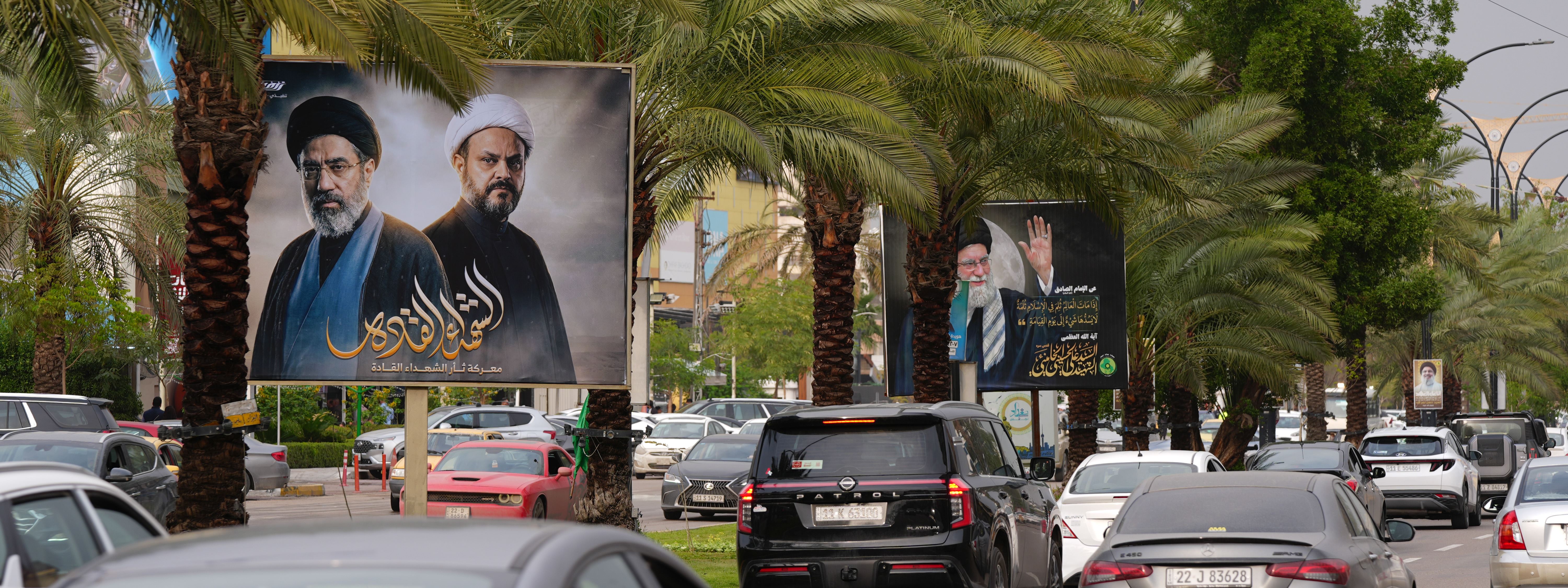 پۆستەرەکان لەسەر بیلبۆرد و شوێنە جیاوازەکانی شارەکە دانراون و وێنەی موجتەبا خامنەیی لە تەنیشت ئەکرەم کەعبی، ئەمینداری گشتیی بزووتنەوەی نوجەبای عێراقیی نزیک لە ئێران نیشان دەدەن. دیمەنەکە بە جۆرێکە، لە هەندێک لە شەقامەکان، ئەو هەستەت بۆ دروست دەبێت کە لە تاران یان شارێکی دیکەی ئێران بیت.