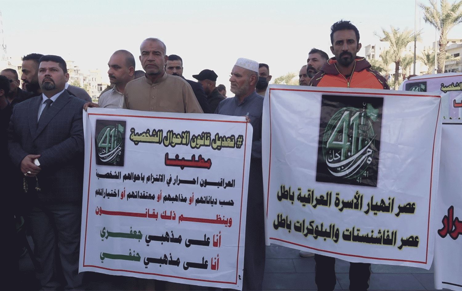 بەشێکی دیکەی گردبوونەوەی شیعە بۆ پشتیوانی لە پەسندکردنی پڕۆژەیاسای باری کەسییە، داوا دەکەن پەرلەمانی عێراق دوور لە دەستوەردانی دەرەکی، بەپەلە ئەم پرۆژەیاسایە پەسەند بکات.