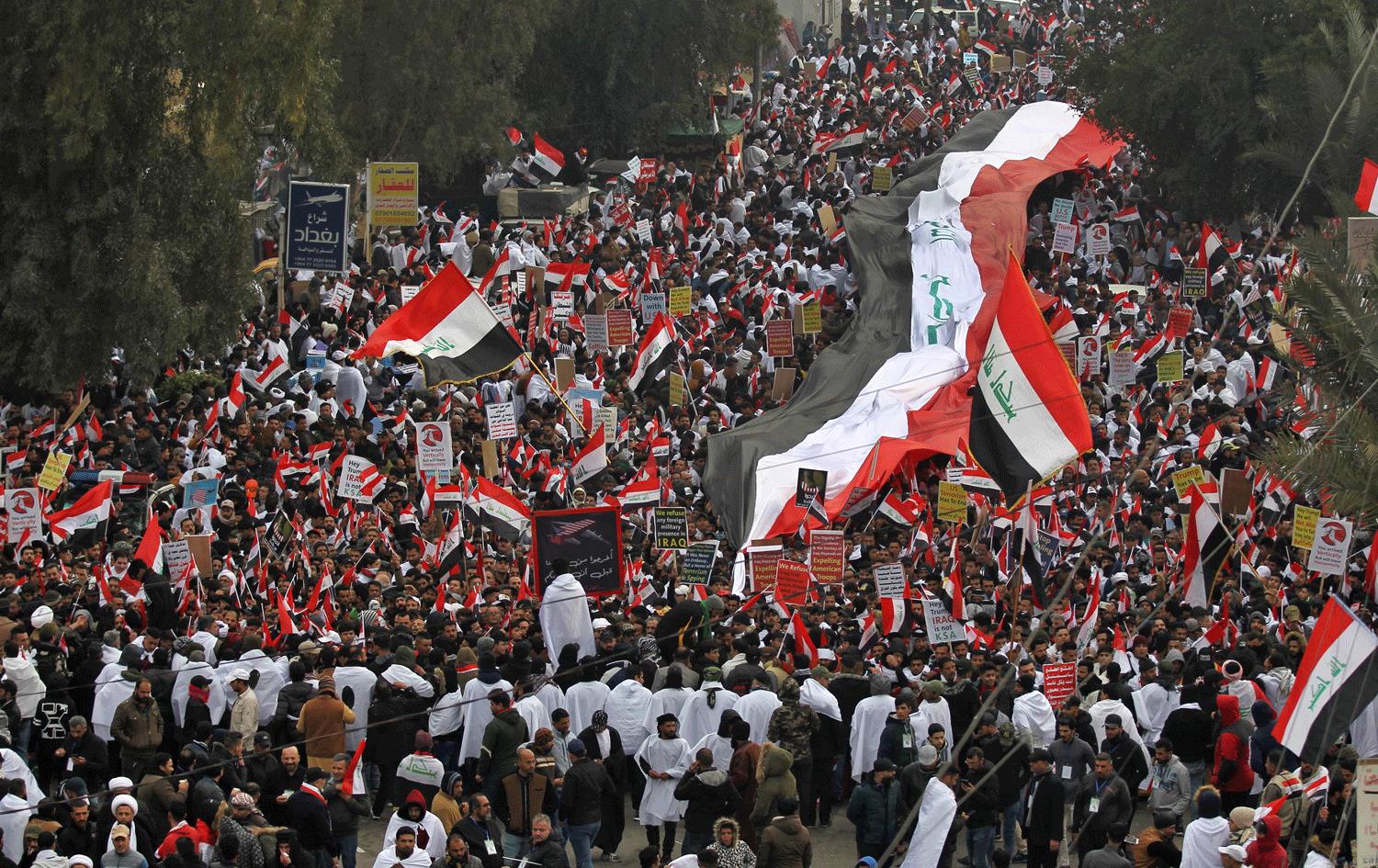 له بهیانی زووهوه (هەینی 24-01-2020) خهڵكی بهمهبهستی بهشداریكردن له خۆپیشاندانه ملیۆنییهكهی كه موقتهدا سهدر بانگهێشتی بۆ كردووه، روو له گۆڕهپانهكان دهكهن.
