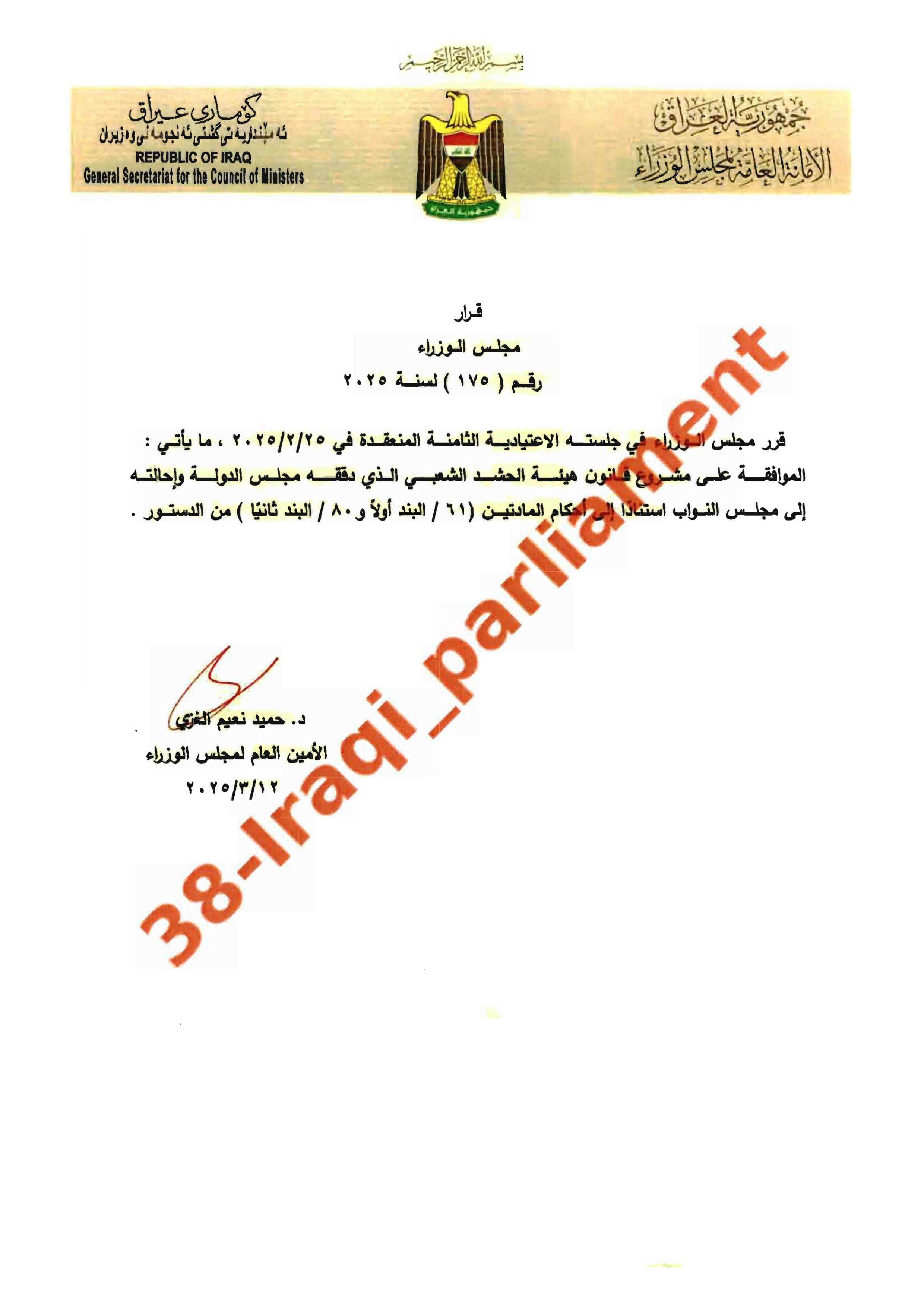 پڕۆژەیاسای دەستەی حەشدی شەعبی