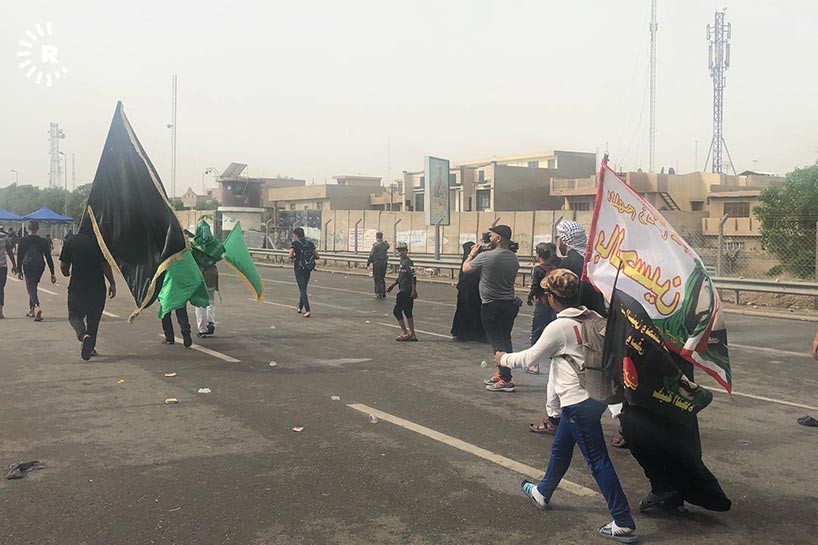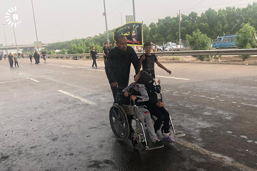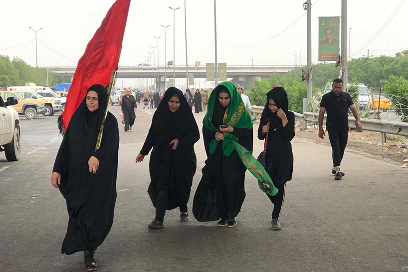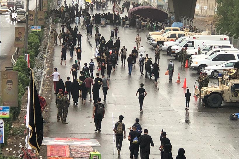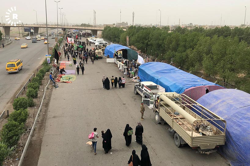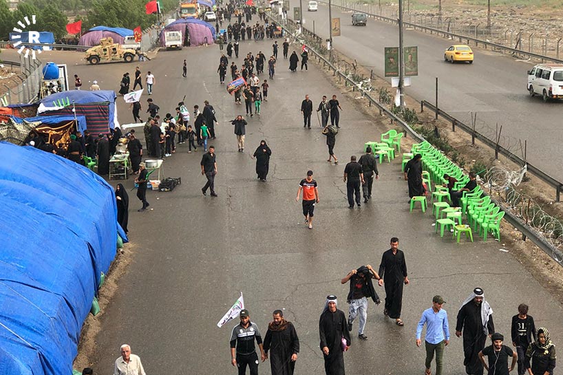 رێگای بەغدا کەربەلا پڕبووە لە دەیان هەزار زیارەتکار کە بەپێ لە بەغداوە بەرەو کەربەلا رێدەکەن بۆ ئەوەی بەشداری لە چلەی ماتەمینی ئیمام حوسێن بکەن لە شەوی دووشەممەی داهاتوودا.