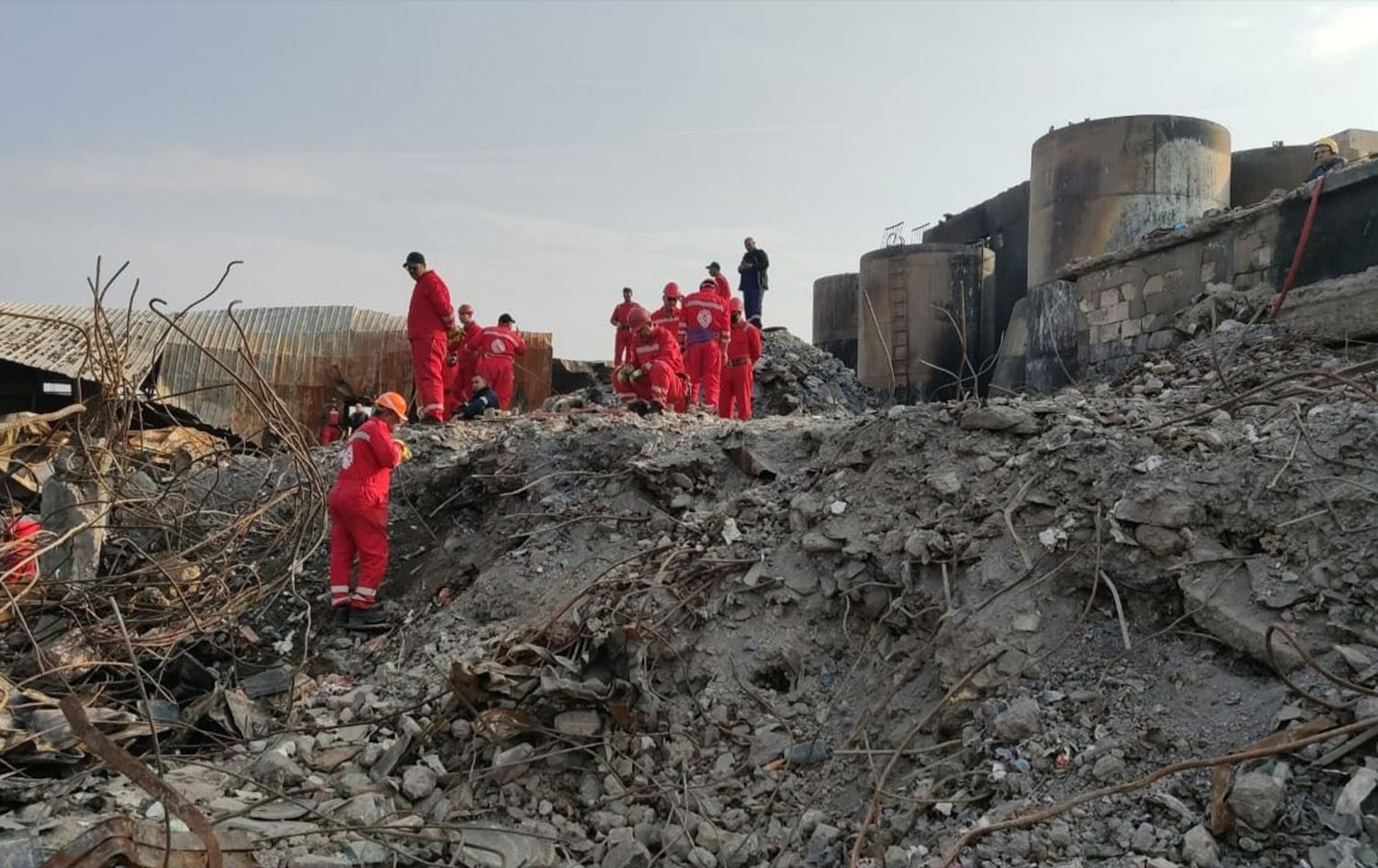 تیمەکانی بەرگریی شارستانیی عێراق لە کاتی گەڕان بە دوای بێسەروشوێنبووانی نێو باڵەخانەیەکی رووخاو لە بەغدا