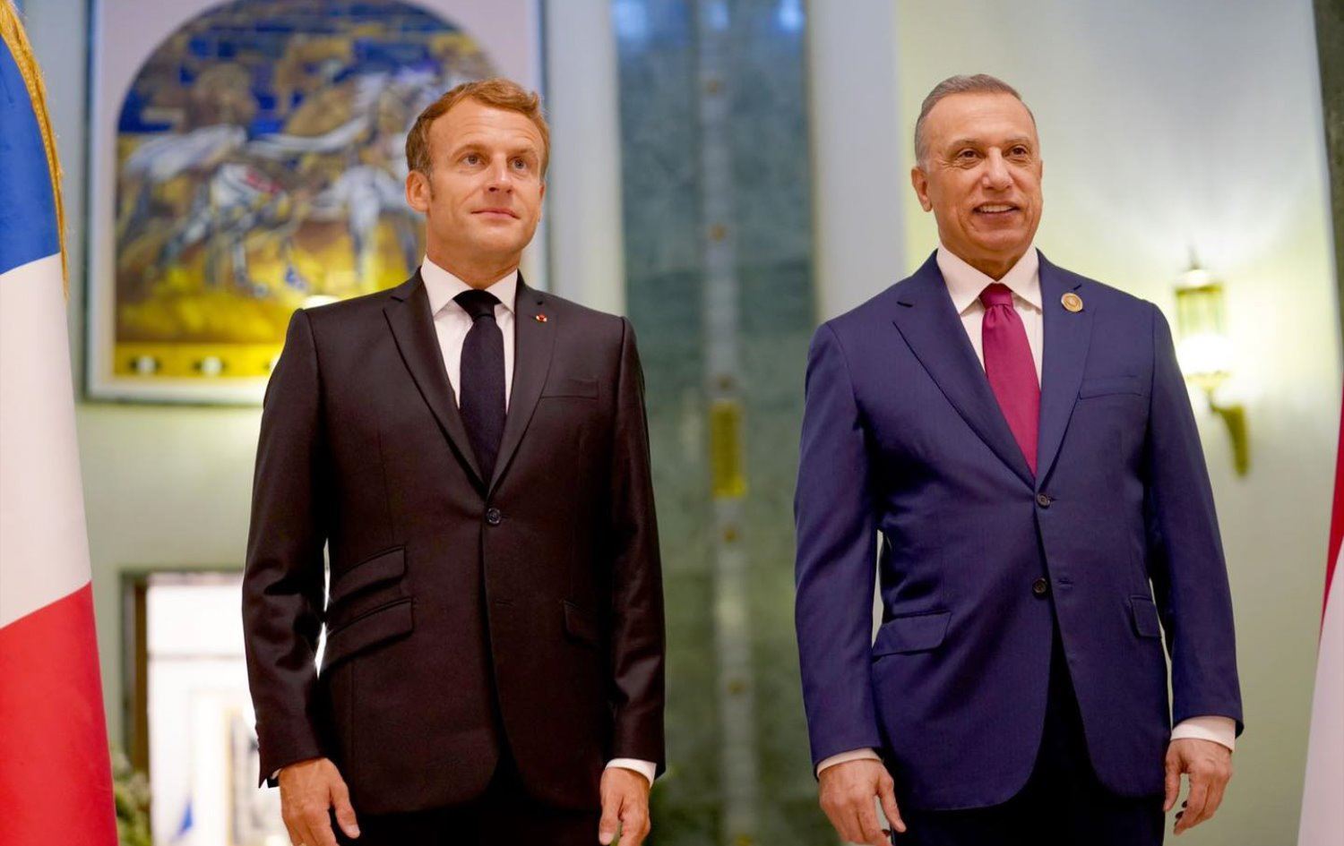 هەڵکەوت عەزیز، پەیامنێری رووداو لە بەغدا رایگەیاند، کاژێر 9:30ی بەیانی ئەمڕۆ شەممە 28-08-2021، ئیمانوێل ماکرۆن، سەرۆکی فەرەنسا، دەگاتە کۆشکی کۆماری و لەلایەن د. بەرهەم ساڵح، سەرۆککۆماری عێراق پێشوازیی لێدەکرێت و رێوڕەسمێکی تایبەت رێکدەخرێت. دواتر هەردوو سەرۆک کۆنفرانسێکی رۆژنامەڤانی ئەمجام دەدەن.