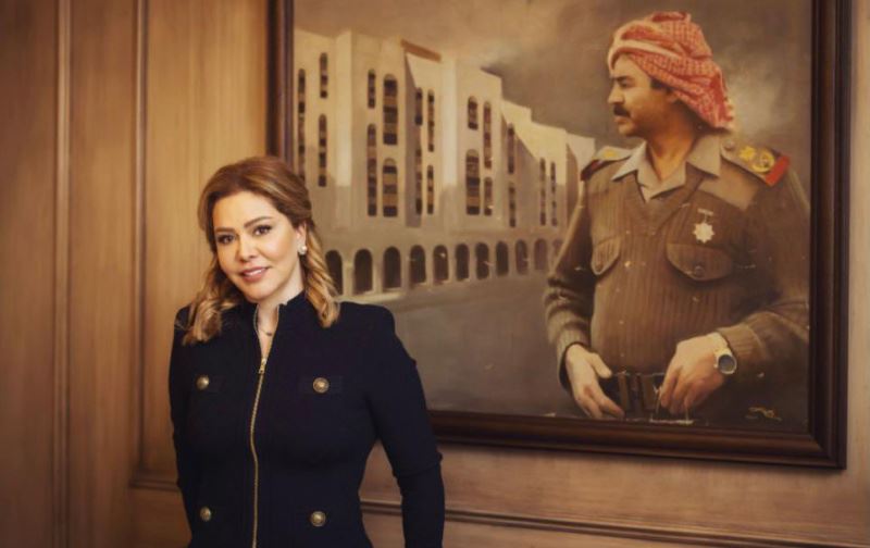 رەغەد، کچی سەدام حوسێن، سەرۆککۆماری لەسێدارەدراوی پێشووتری عێراق لە پشتییەوە وێنەی باوکی دەرکەوتووە.