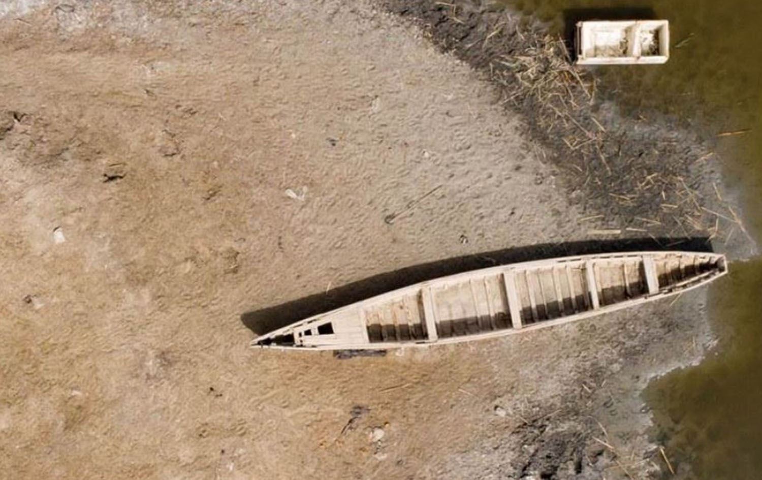 بەلەمێک لە زۆنگاوی حەممار، کە ئەمساڵ بەشێکی بەهۆی کەمیی ئاو وشک بووە، وێنە: بڵند تاهیر - رووداو