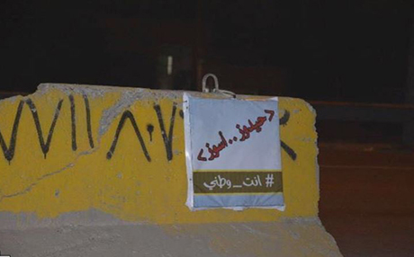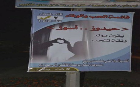 گەنجەکە هاشتاگی ''تۆ نیشتمانمی" لەسەر یەکێک لە پۆستەرەکان داناوە و لە هەموو پۆستەرەکانیش ''حەیدووز.. ئەسووزی نووسیوە''. لەسەر پۆستەرێکیش نووسیویەتی: ''تۆ لەسەر شێوەی نیشتمانی و، هەرگیز هیچ قیبلەنمایەک ناچێتەوە سەر چاوەکانت''.