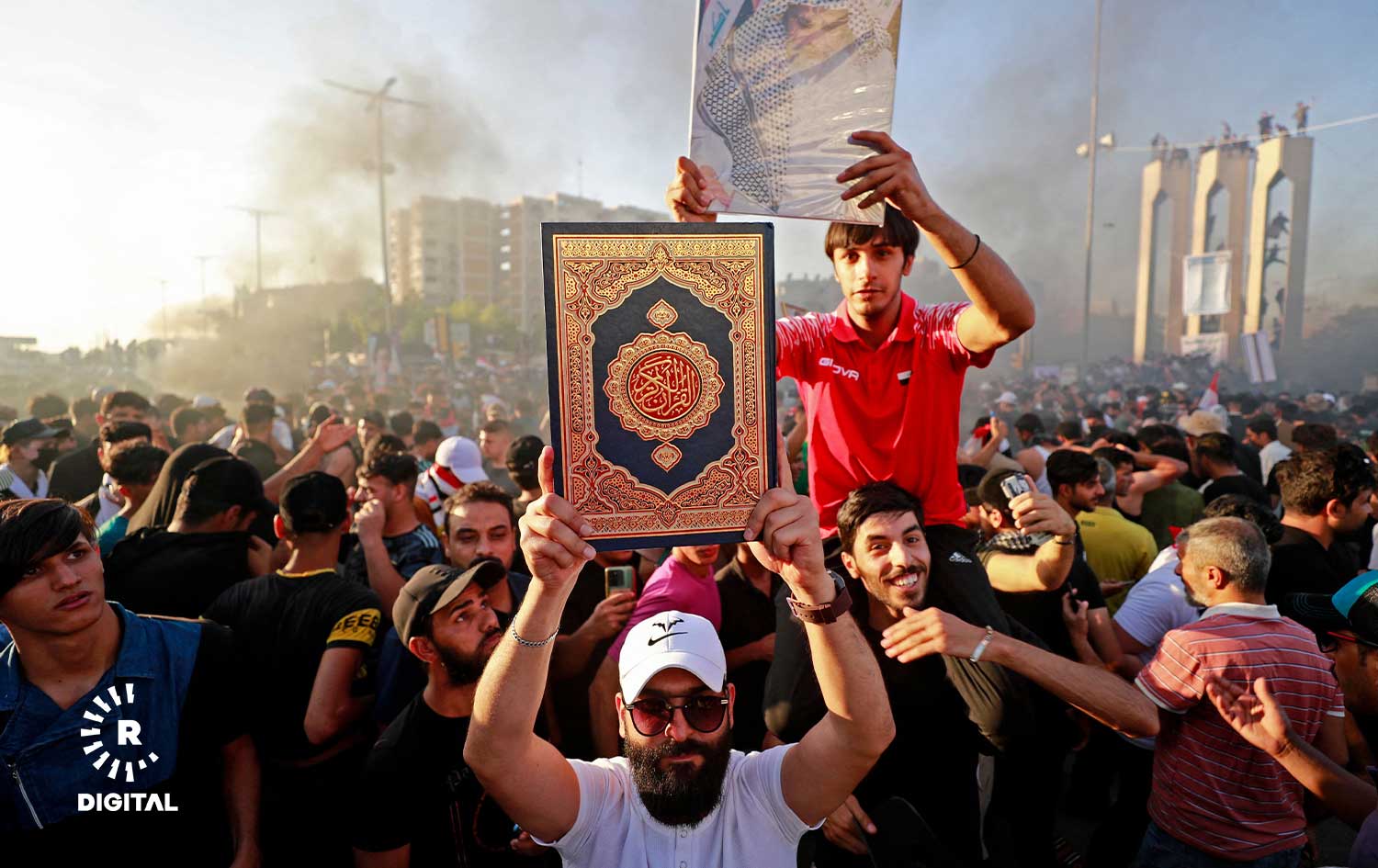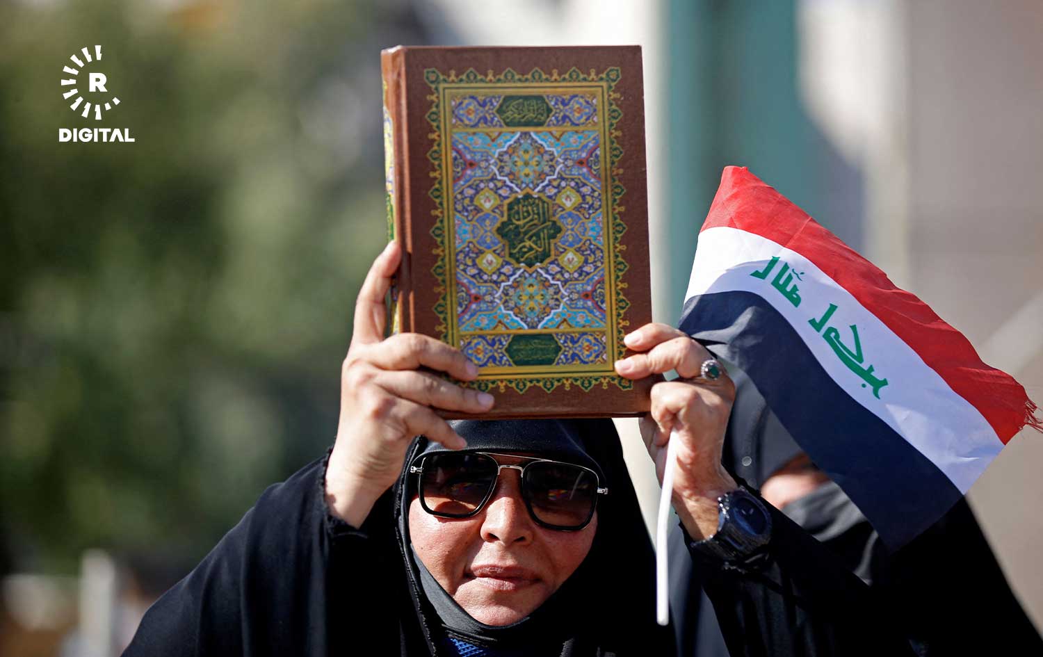 سەدان هەزار کەس لە لایەنگرانی سەدر کە پێشتر رێبەری رەوتەکە بانگەوازی بۆ کردبوو، ئەمڕۆ چوونە سەر شەقام و دژی سووتاندنی قورئانی پیرۆز لە سوێد، ناڕەزاییان دەربڕی و بەشێکیان قورئانیان بەرزکردەوە.