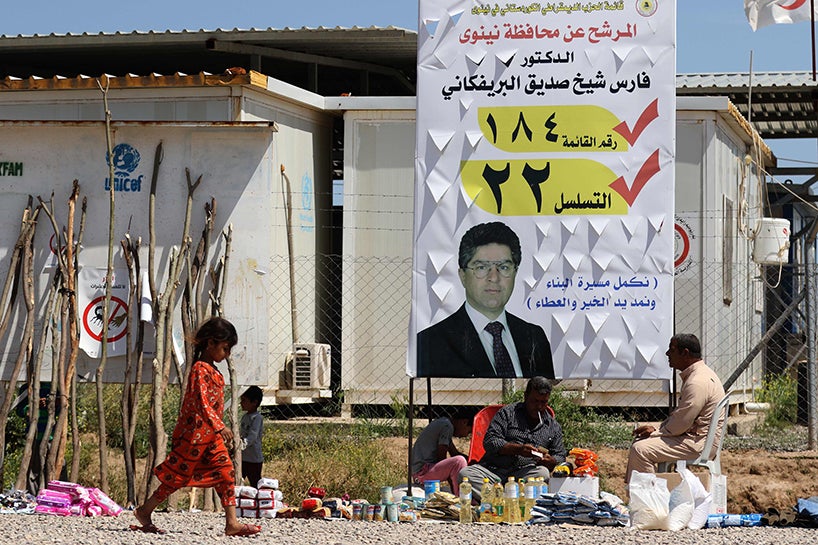 بانگەشەی هەڵبژاردنی پەرلەمانی عێراق گەیشتووەتە کەمپی ئاوارەکانی موسڵیش.
