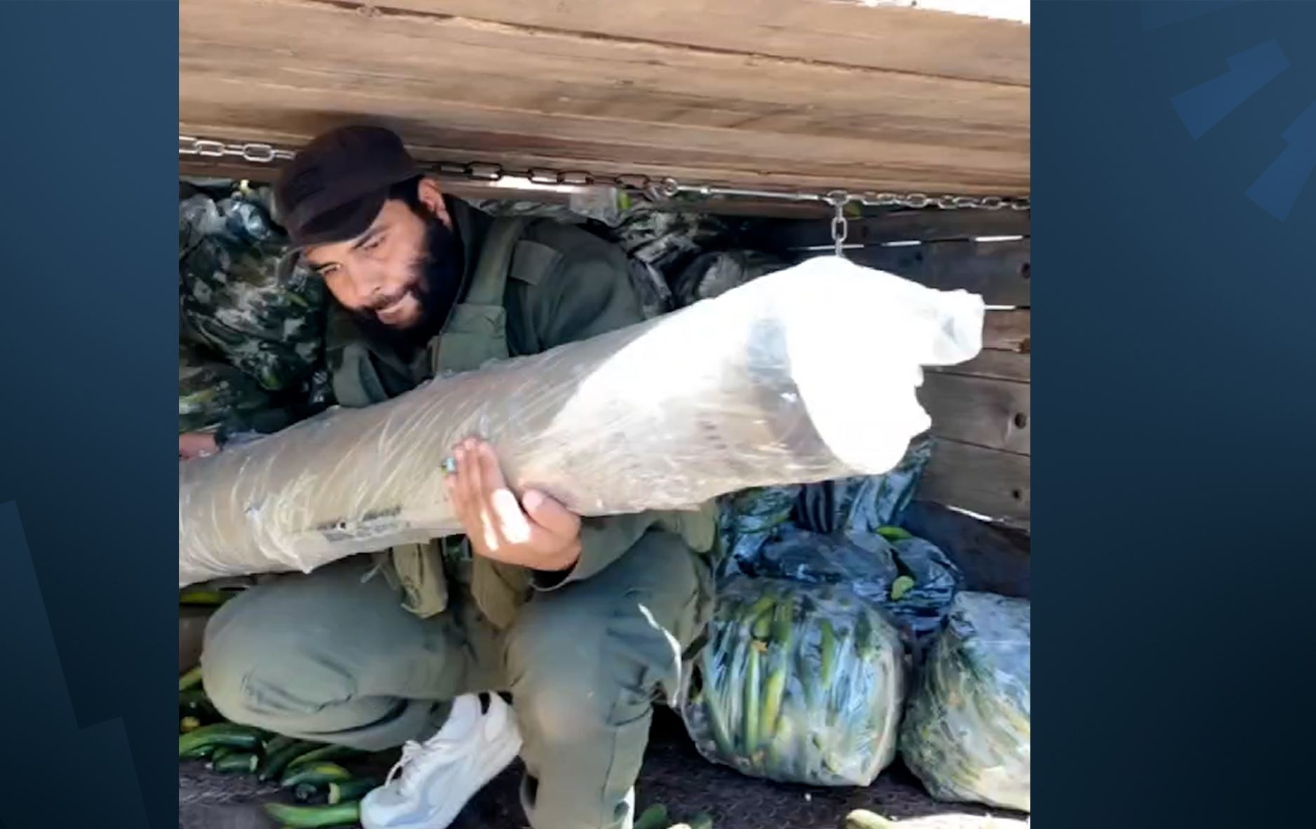 وەزارەتی ناوخۆی سووریا ئەم ڤیدیۆیەی بڵاوکردووەتەوە و دەڵێت، لە سنووری حومس دەستیان بەسەر بارێک میوەدا گرت چەندین مووشەکی تێدا بووە و هەوڵدراوە بە قاچاخ ببرێتە دەرەوە
