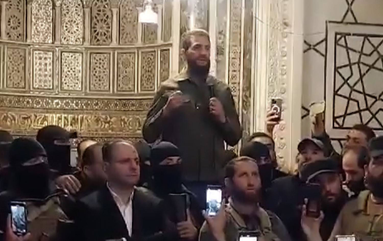 سەرۆکی دەستەی تەحریر شام دوای کۆنترۆڵکردنی دیمەشق، چووە نێو مزگەوتی ئومەوی و لەبەردەم هەزاران کەس رایگەیاند، "ئەسەد سووریای کردە گۆڕەپانی تەماعکاری ئێران".