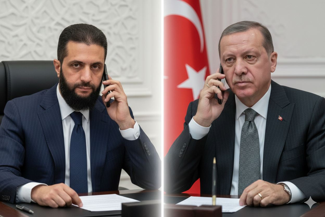 ئەحمەد شەرع، سەرۆکی حکومەتی راگوزەری سووریا، پەیوەندییەکی تەلەفۆنی لەگەڵ رەجەب تەیب ئەردۆغان، سەرۆککۆماری تورکیا ئەنجامدا و تێیدا باسیان لە دوایین پێشهاتەکانی گۆڕەپانی سووریا و هەوڵەکان بۆ "چەسپاندنی سەقامگیری" لە ناوچەکەدا کرد.