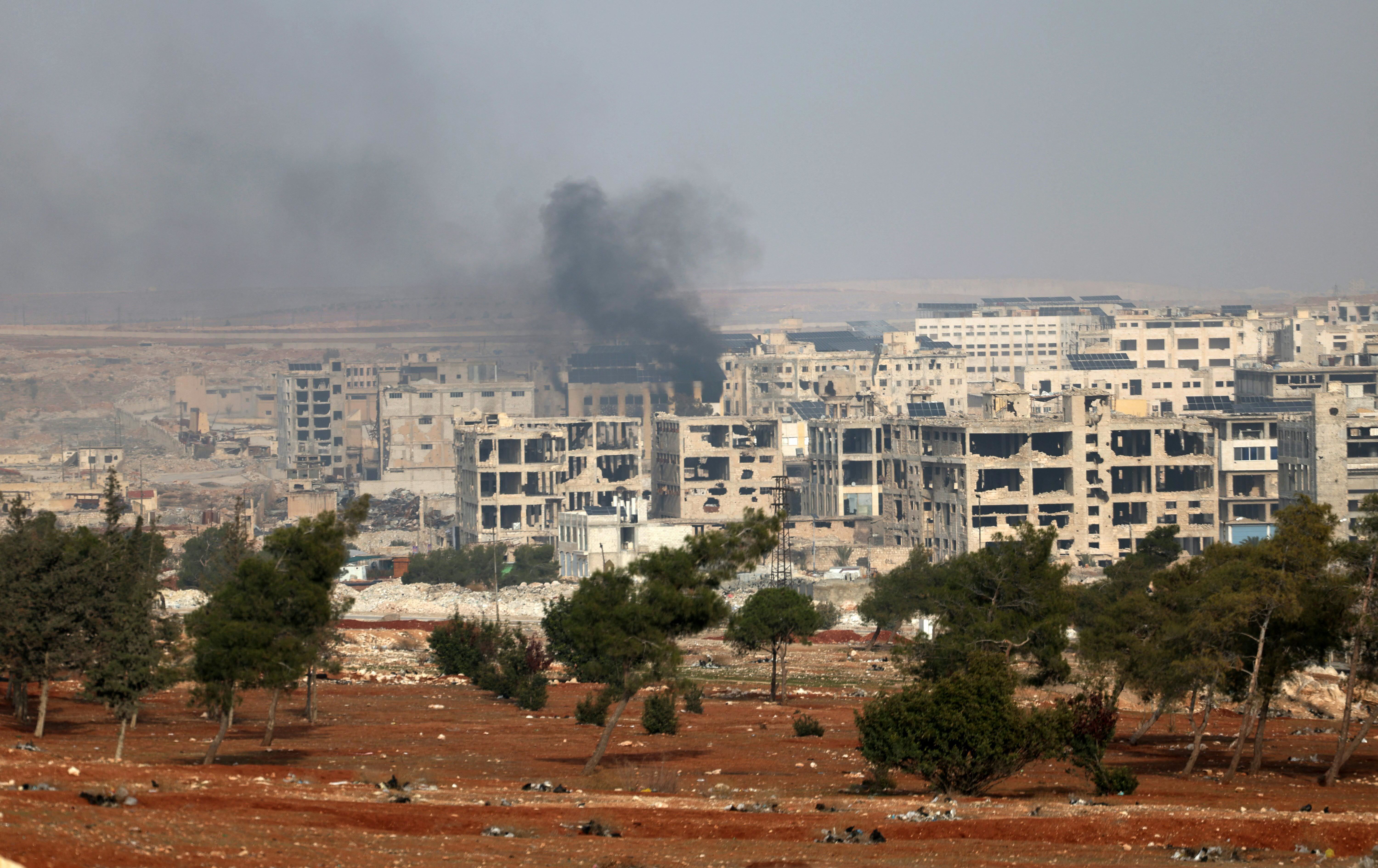 دووکەڵ لە گەڕەکەکانی ئەشرەفیە و شێخ مەقسوود بەرز دەبێتەوە. وێنەکە لە رۆژی 8-1-2026 گیراوە: AFP