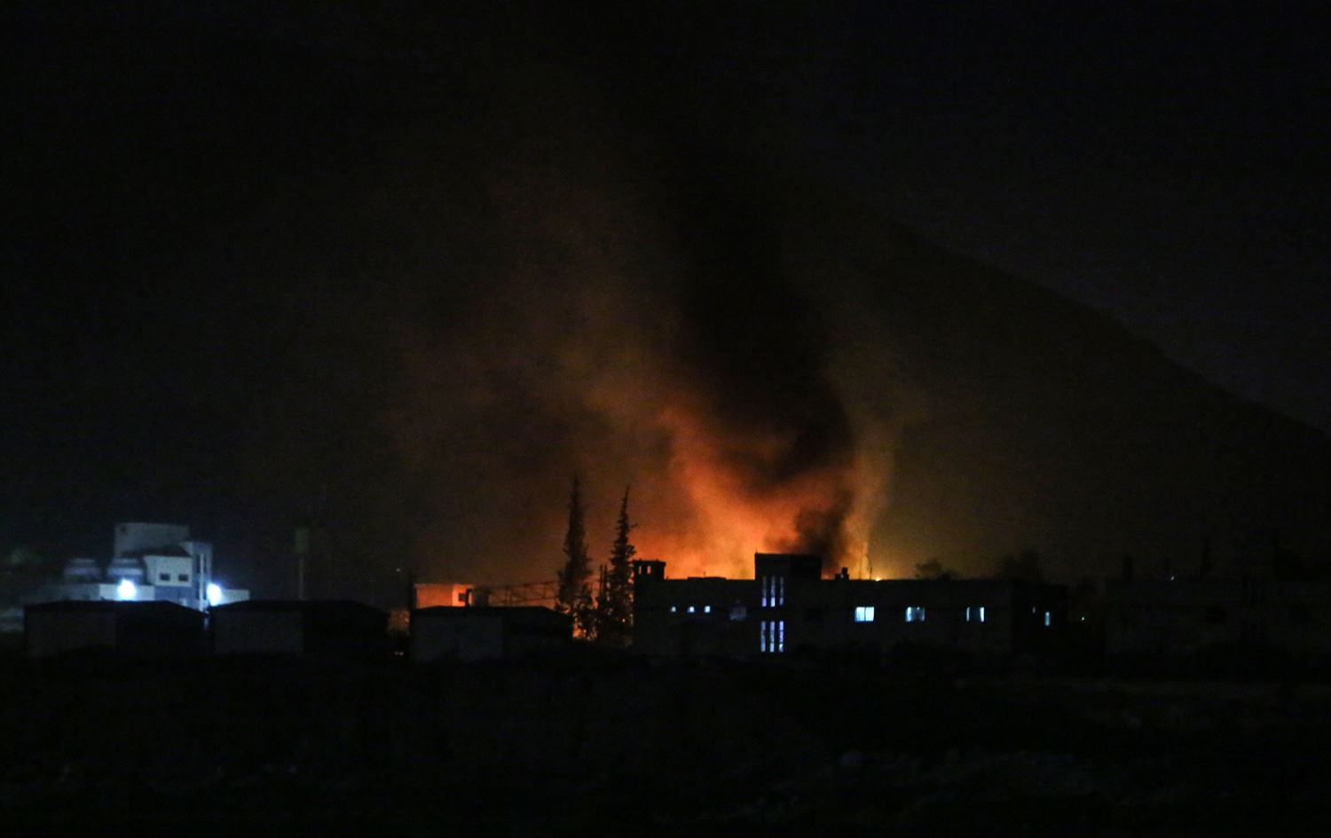 دیمەنی راستەوخۆی دیمەشق پێشانیدەدات دووکەڵ لە نێوەڕاستی پایتەختەکە بەرزدەبێتەوە.