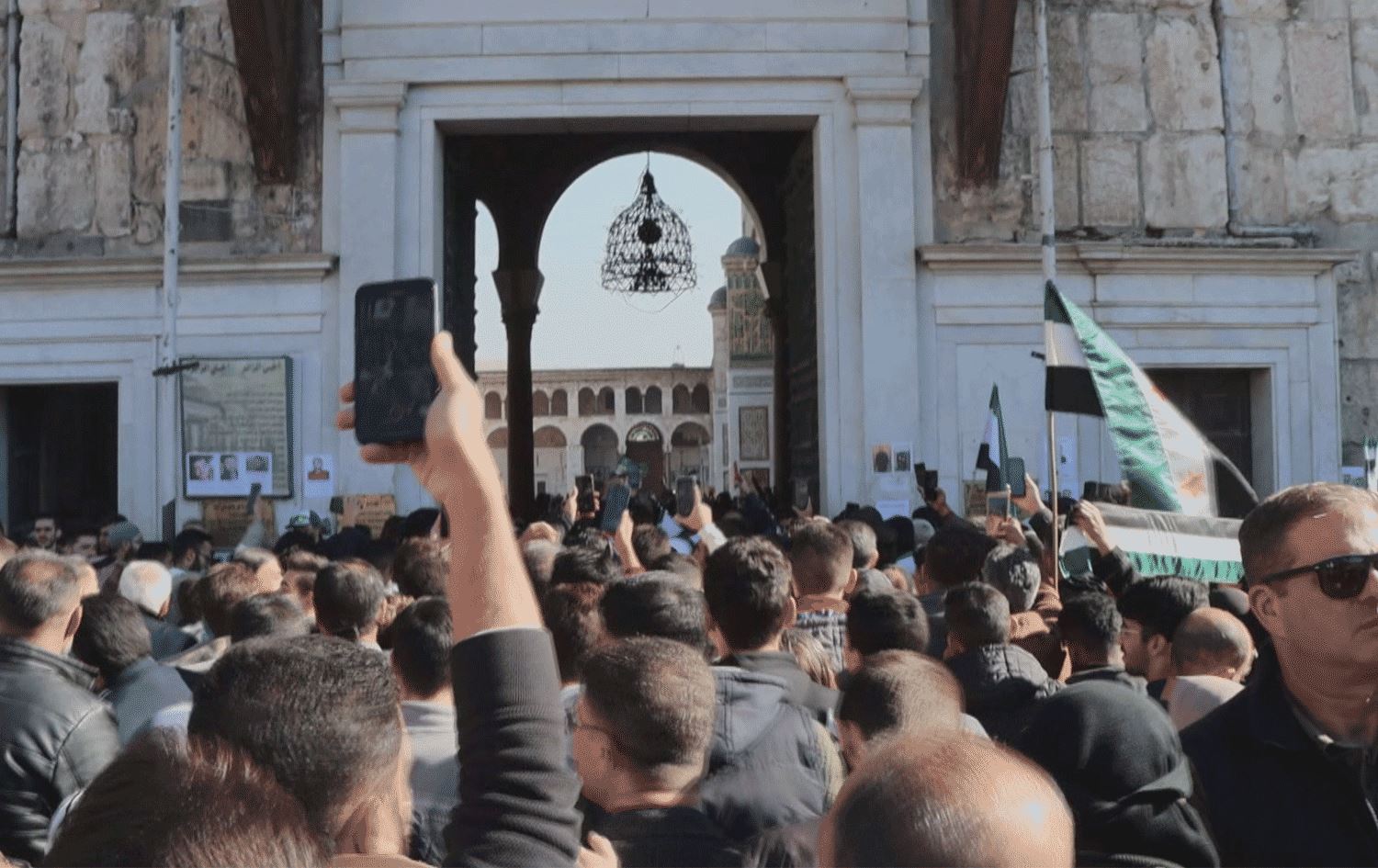 لە مزگەوتی ئومەوی لەنێو جەرگەی دیمەشقی پایتەختی سووریا، رووداوێکی مێژوویی روویدا. ئاپۆڕای جەماوەری هاووڵاتییان روویانکردە مزگەوتەکە و دوای کەوتنی حکومەتی ئەسەد یەکەم نوێژی هەینییان تێدا کرد.