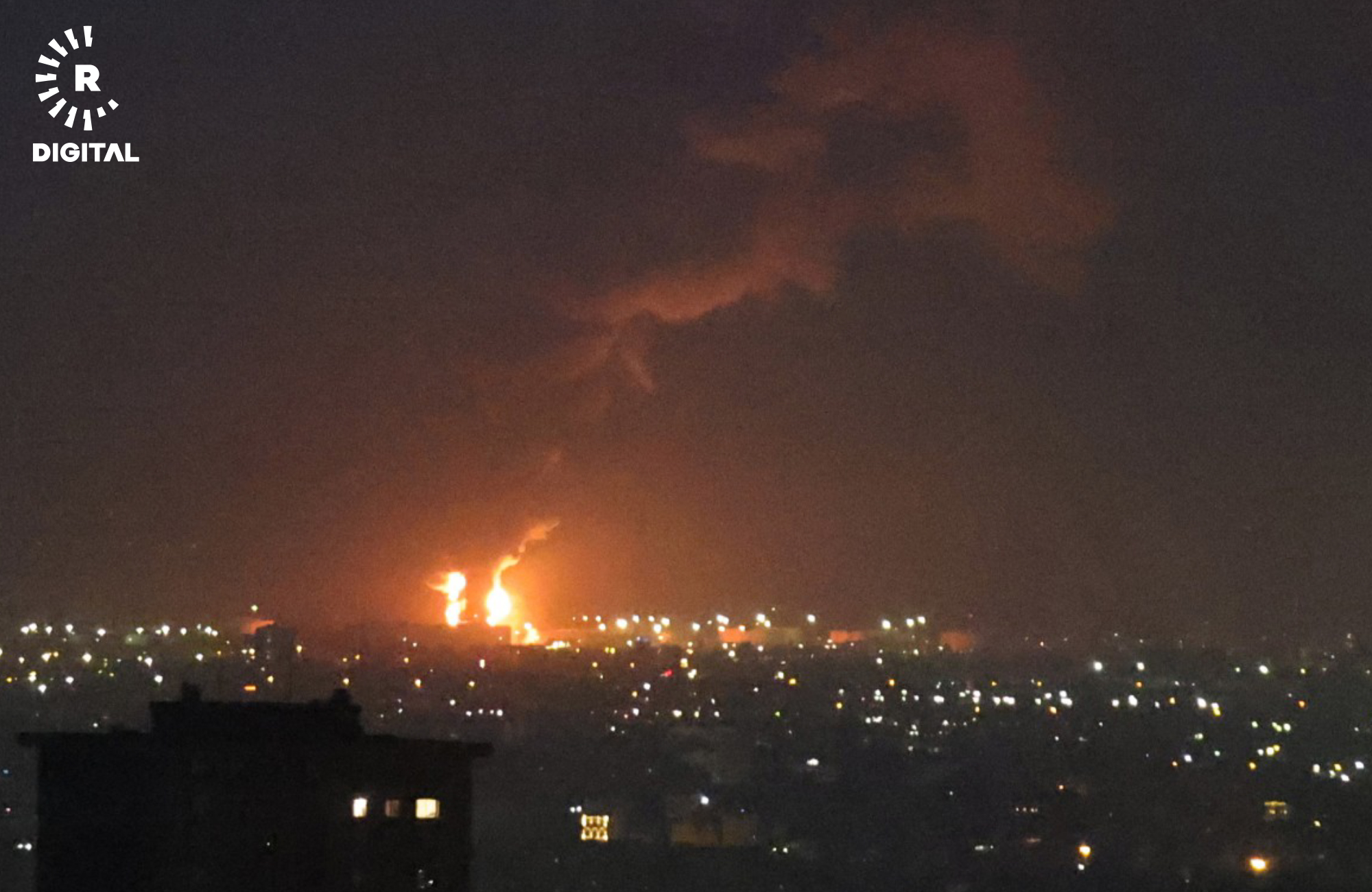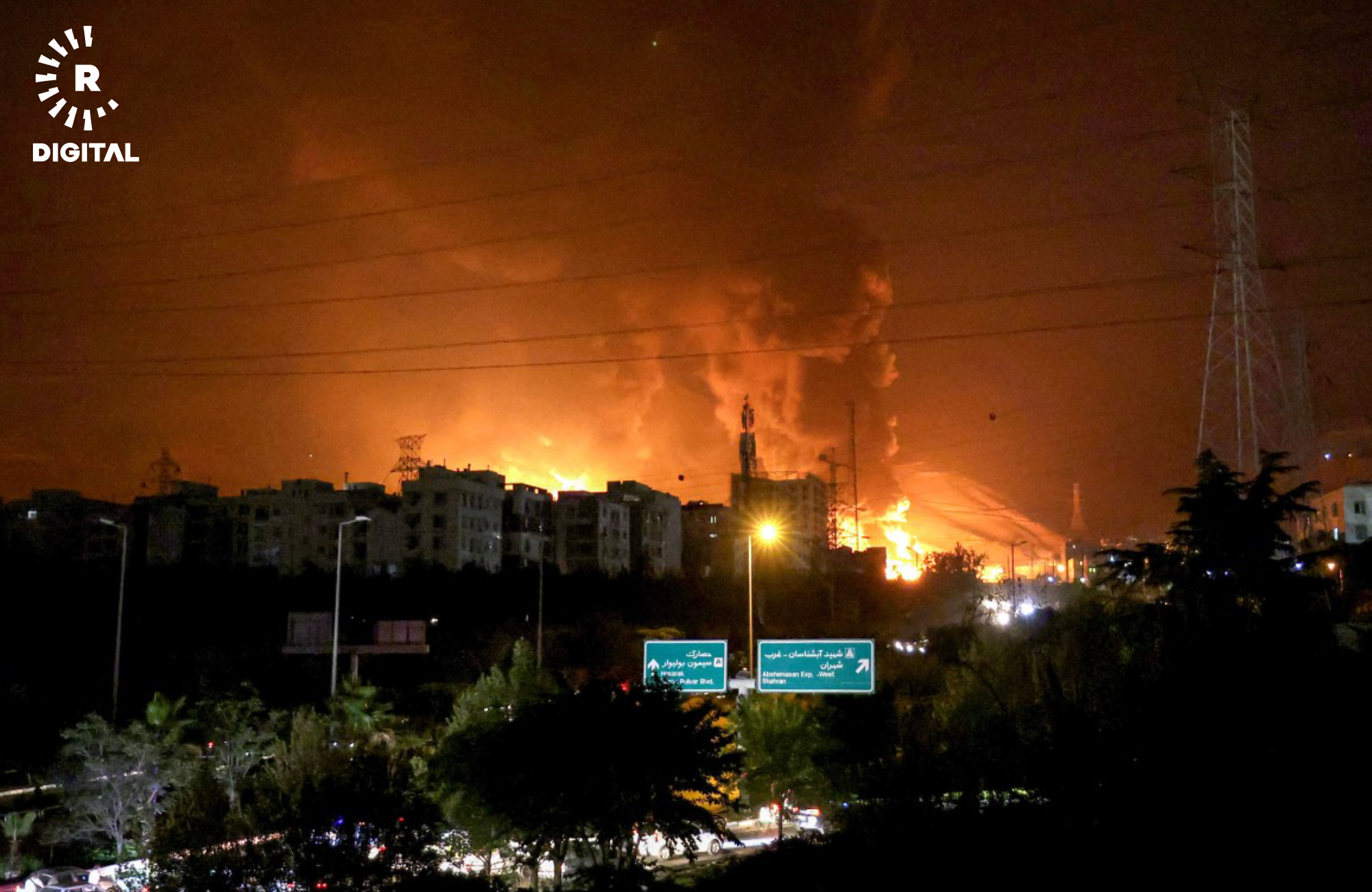 بەشێک لە وێنەکانی دیکە، هێرشی ئیسرائیلە بۆ سەر پاڵاوتگەیەکی نەوت لە تاران. ئاگری پاڵاوتگەکە ناوچەکەی رووناککردووەتەوە.