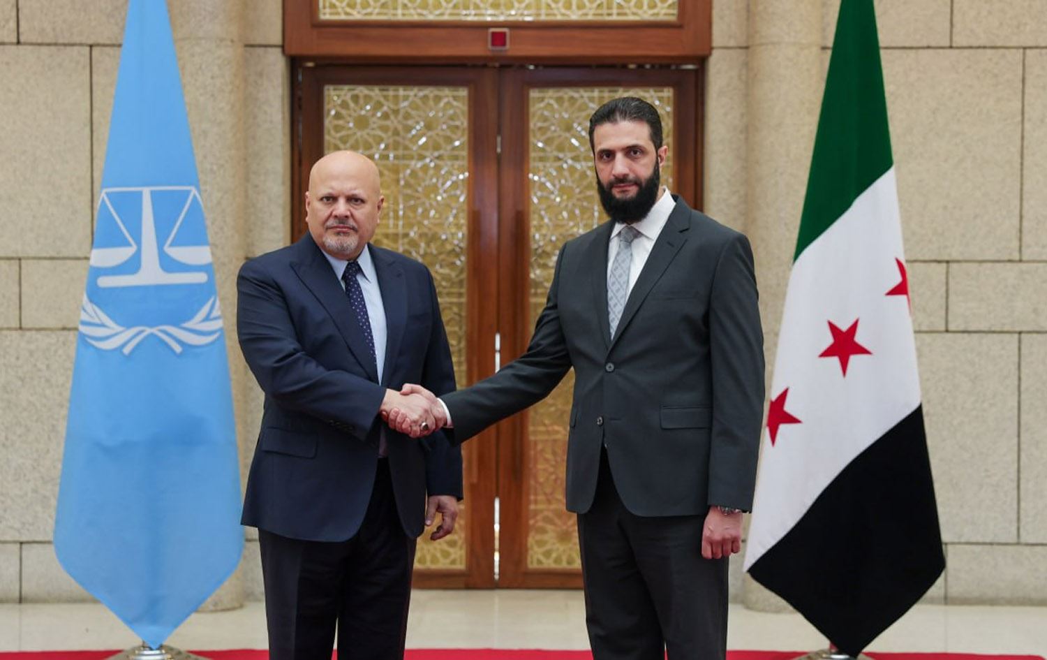 ئەحمەد شەرع، سەرۆکی دەسەڵاتی راگوزەری سووریا و کەریم خان، داواکاری گشتیی دادگای نێودەوڵەتیی تاوان لە دیمەشق