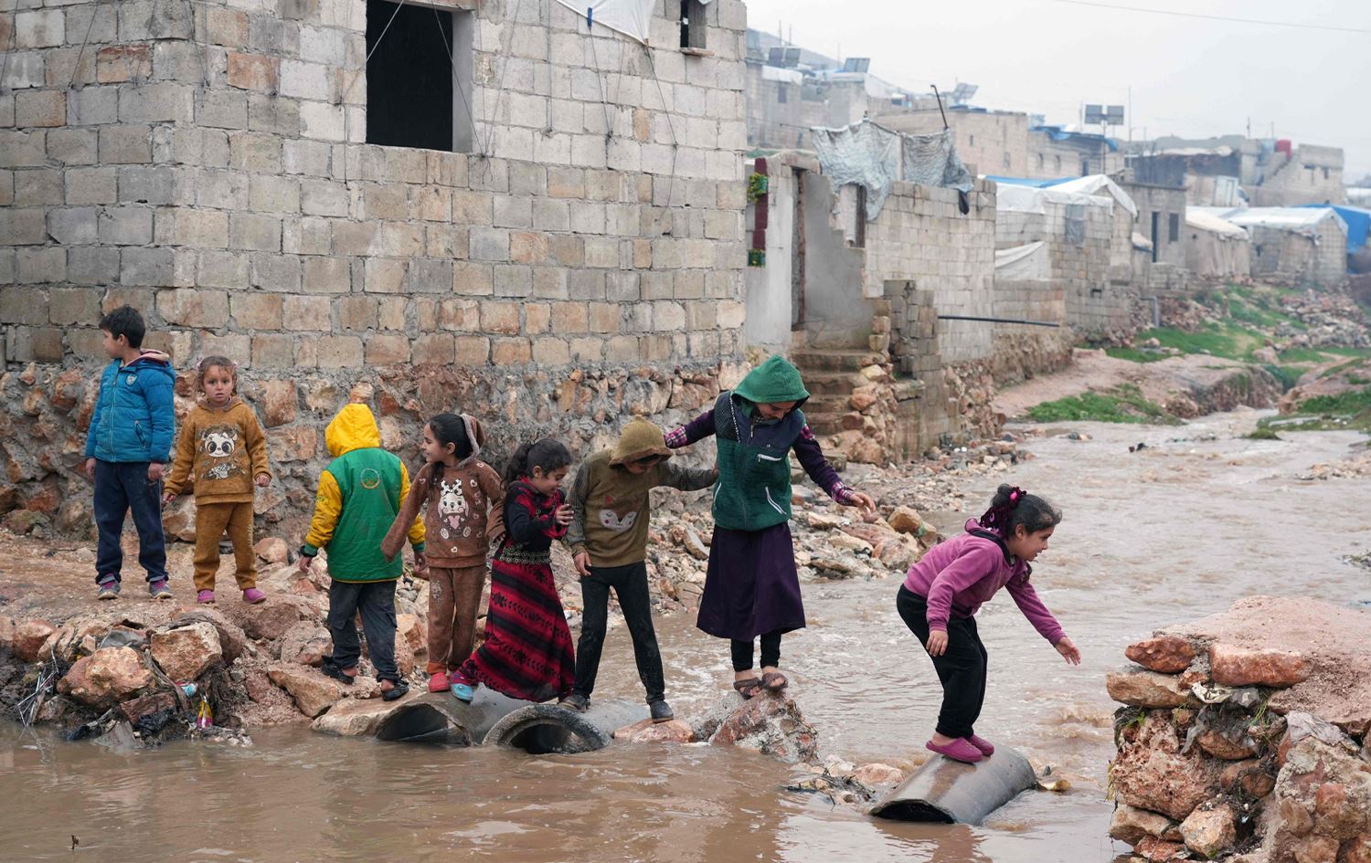 زستان، باران، قوڕ و لیتە بوونەتە دێوەزمەی دانیشتووی نێو کەمپێکی ئاوارەکان لە ناوچەی زەوفی پارێزگای ئیدلیبی باکووری سووریا؛ قوڕ تا نێو خێوەتەکان چووە و پێخەف و کەلوپەلەکانی بە کەڵکی بەکاهێنان نەماون.