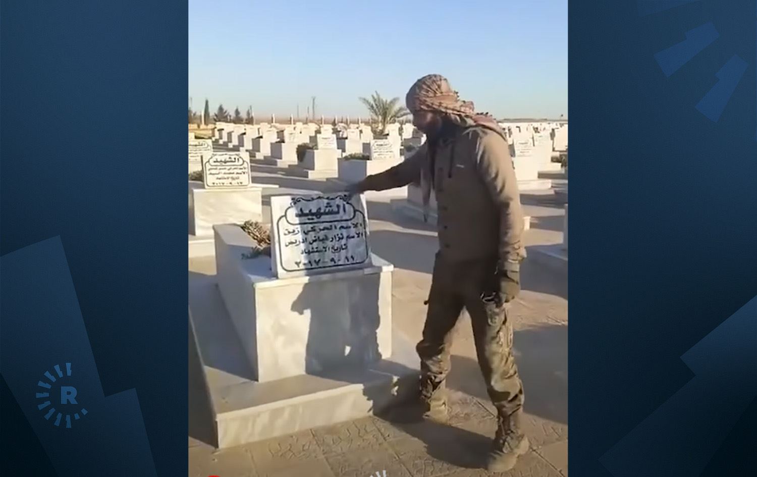بە گوێرەی گرتەیەکی ڤیدیۆیی، ئەندامێکی گرووپە چەکدارەکانی سووریا لە گۆڕستانێکدا دەبیندرێت کە خۆی دەڵێت، ئەو شوێنە پارێزگای حەسەکەی رۆژئاوای کوردستانە و دەست بە تێکدانی گۆڕی شەرڤانەکان دەکات.