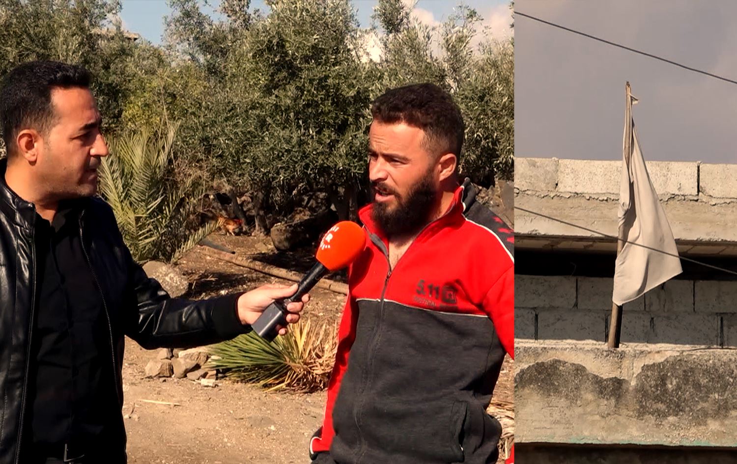 عەبدولرەحمان ئەحمەد، دانیشتووی گوندی معێرییە لە سووریا پەنجەی بە ئاراستەی سوپای ئیسرائیل لە نزیک گوندەکەیانەوە درێژ دەکات دەڵێ "سوپای ئیسرائیل لای ئەو دارانەوەن، بەشێوەکی زۆر سیستماتیکی بڵاوبوونەوەتەوە و هەموو شتێکیان پێیە لە زرێپۆش، چەکی قورس و هەموو شتێک."