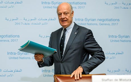 لە دووەم رۆژی گەڕی چوارەمی کۆبوونەوەکانی جنێڤ سەبارەت بە چارەسەرکردنی قەریرانەکانی سووریا، ستافان دی مستۆرا، نێردەی تایبەتی نەتەوە یەکگرتووەکان بۆ کاروباری سووریا لەگەڵ هەردوو شاندی حکومەت و ئۆپۆزیسیۆن کۆبووەوە و، پێشنیازێکی بۆ هەردوو شاند کرد.