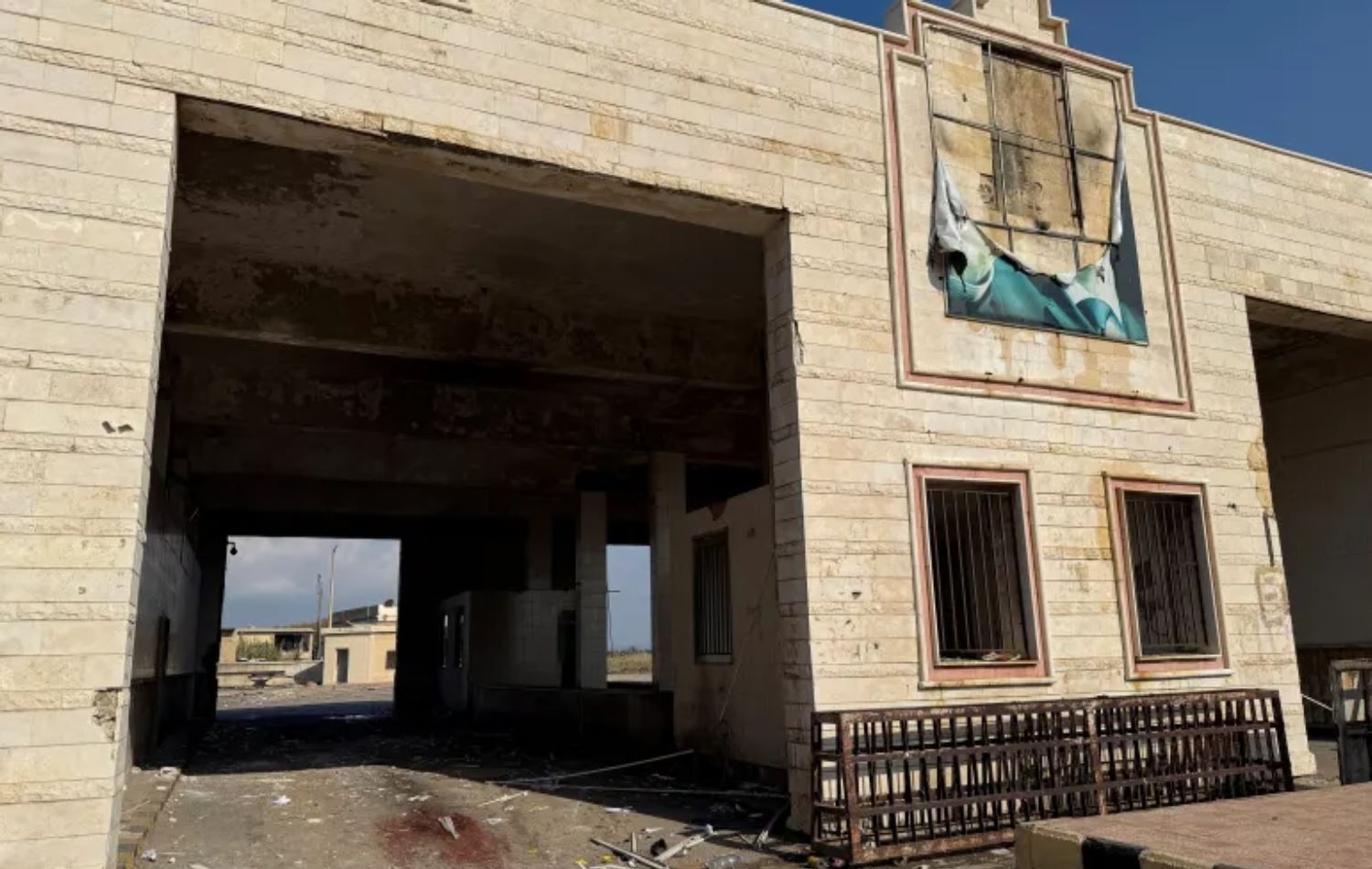 وێنەیەکی دڕاوی بەشار ئەسەد لەسەر دیواری دەروازەی سنووریی عەریزە لەنێوان سووریا و لوبنان، وێنە: رۆیتەرز