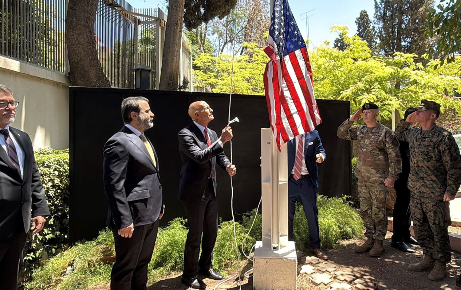رۆژی پێنجشەممە، 29ـی ئایاری 2025، میدیای فەرمیی سووریا بڵاویکردەوە، تۆماس باراک، نوێنەری تایبەتی ئەمریکا بۆ کاروباری سووریا، کە لە هەمان کاتدا باڵیۆزی تورکیاشە، لەگەڵ وەزیری دەرەوەی سوریا ئەسعەد شەیبانی، شوێنی نیشتەجێبوونی نێردەی ئەمریکای لە پایتەختی سووریا کردەوە.