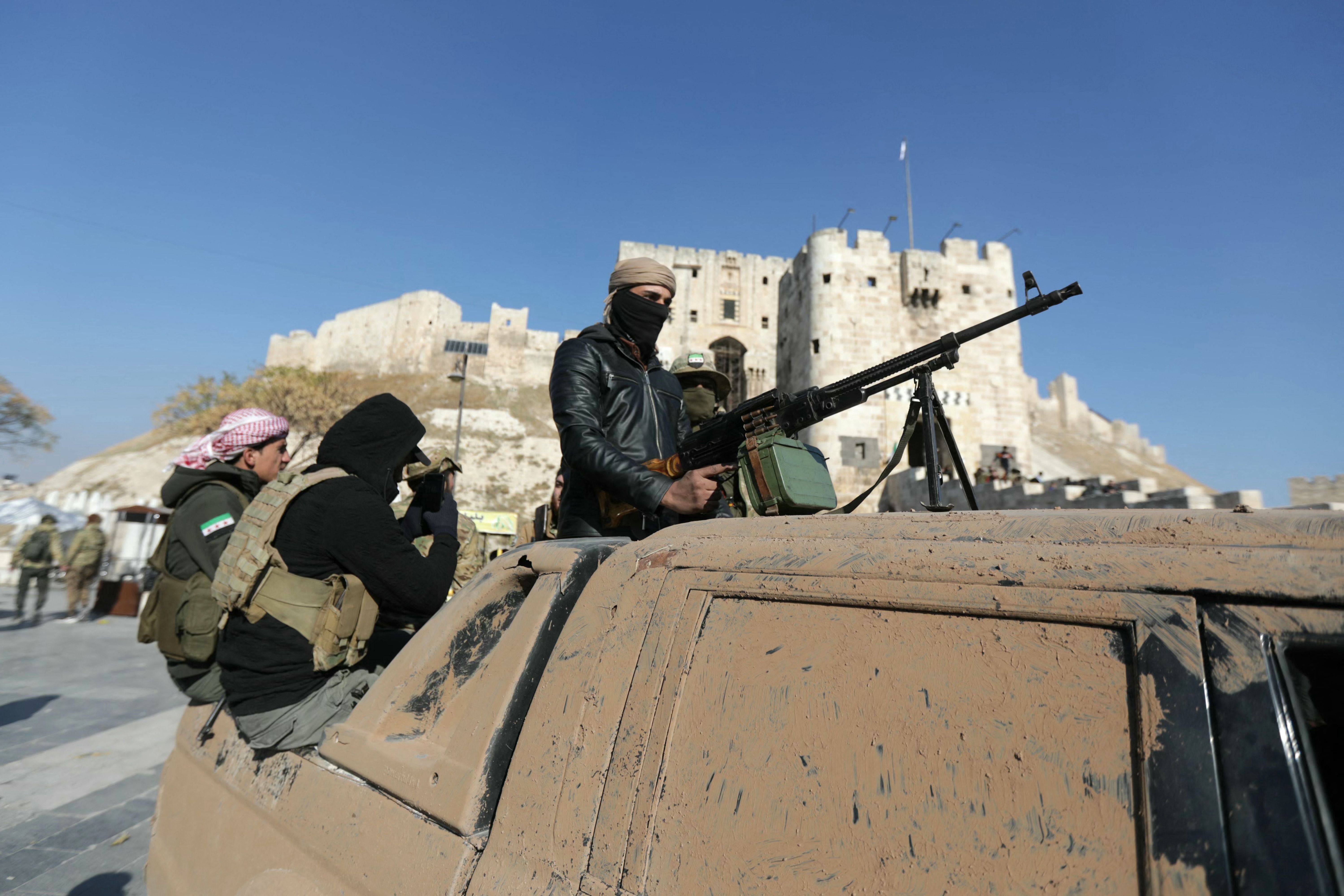 هێزە چەکدارەکانی دژی حکومەتی سووریا لەنێو شەقامێکی حەلەب، لە 30-11-2024، وێنە: Bakr ALKASEM / AFP