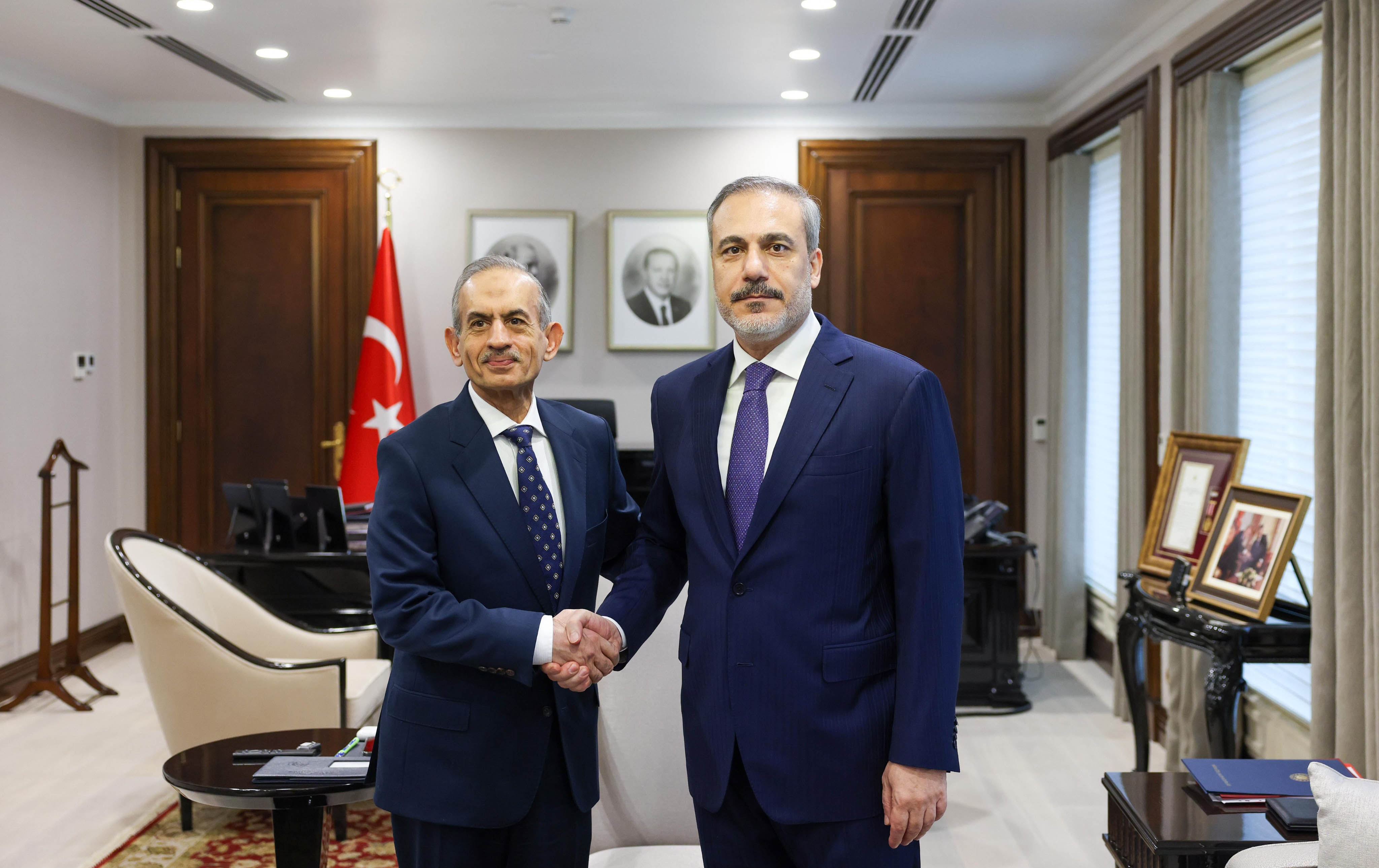 هاکان فیدان، وەزیری دەرەوەی تورکیا لە ئەنقەرە پێشوازیی لە حەسەن توران، سەرۆکی بەرەی تورکمانیی عێراق کرد.