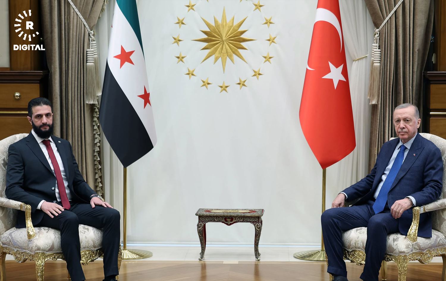 رەجەب تەیب ئەردۆغان، سەرۆککۆماری تورکیا لە ئەنقەرە پێشوازی لە ئەحمەد شەرع، سەرۆککۆماری سووریا بۆ قۆناخی راگوزەر کرد.