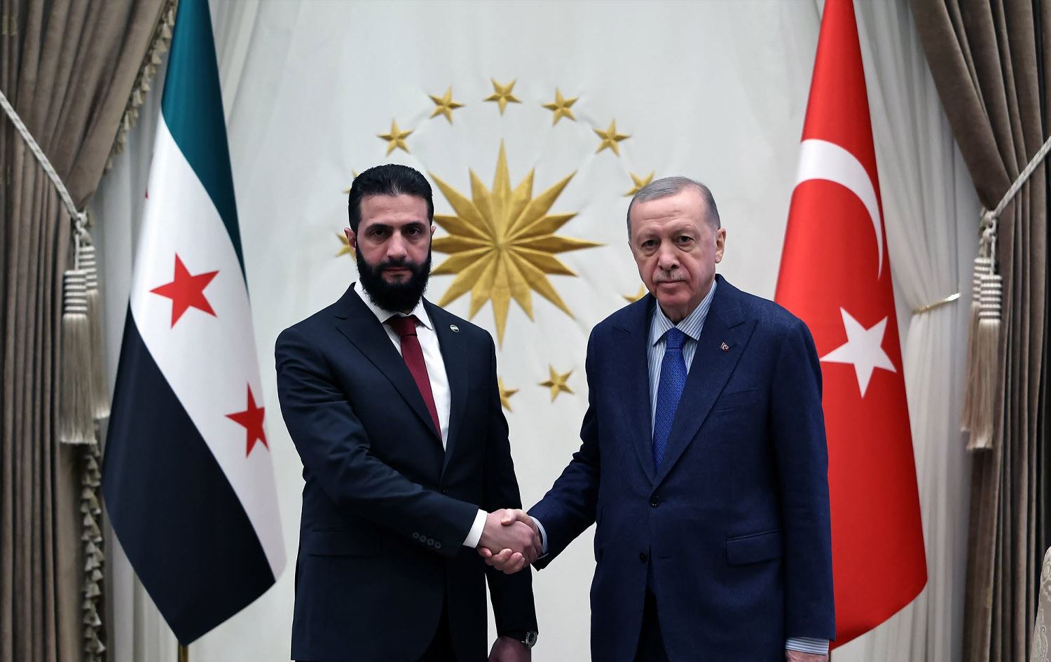 ئەحمەد شەرع، سەرۆککۆماری سووریا بۆ قۆناخی راگوزەر ئەمڕۆ سێشەممە، 4ی شوباتی 2025، گەیشتە ئەنقەرەی پایتەختی تورکیا و لەگەڵ رەجەب تەیب ئەردۆغان، سەرۆککۆماری تورکیا کۆبووەوە، دواتریش کۆنفرانسێکی رۆژنامەڤانییان سازکرد.
