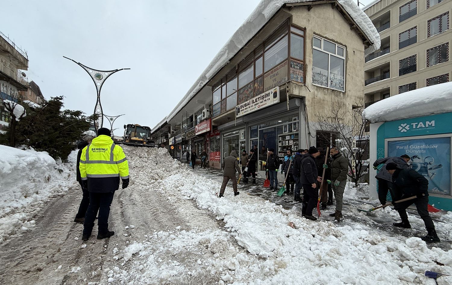 لە شاری بەدلیسیش تیمەکانی شارەوانی و رێگەوبان، رێگە و شەقامەکان پاکدەکەنەوە.
