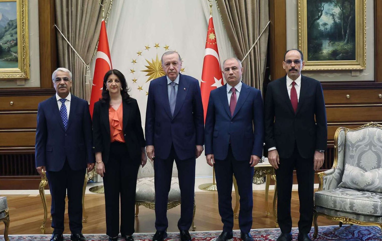 لای راستەوە: ئیبراهیم کاڵن، سەرۆکی میت. ئەفکان ئاڵا، جێگری سەرۆکی ئاکپارتی. رەجەب تەیب ئەردۆغان، سەرۆککۆماری تورکیا. پەروین بوڵدان و میتحەت سانجار پەرلەمانتارانی دەم پارتی.