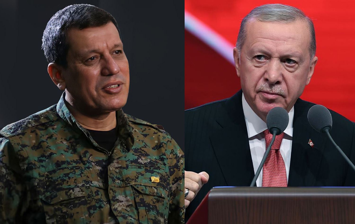 رەجەب تەیب ئەردۆغان، سەرۆککۆماری تورکیا و مەزڵووم عەبدی، فەرماندەی گشتیی هێزەکانی سووریای دیموکرات