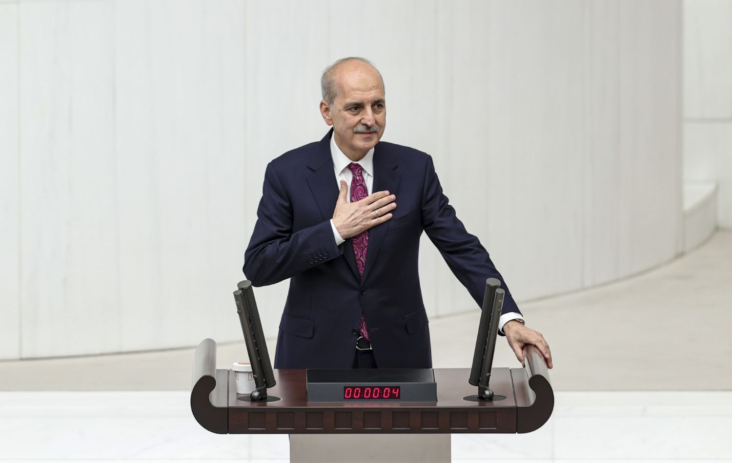 نوعمان کورتوڵمووش، سەرۆکی پەرلەمانی تورکیا رۆژی هەینی، 8ی ئابی 2025 بەر لە دەستپێکردنی دووەمین کۆبوونەوەی لیژنەکەی پرۆسەی چارەسەری لە پەرلەمانی تورکیا، گوتارێکی پێشکێش کرد.