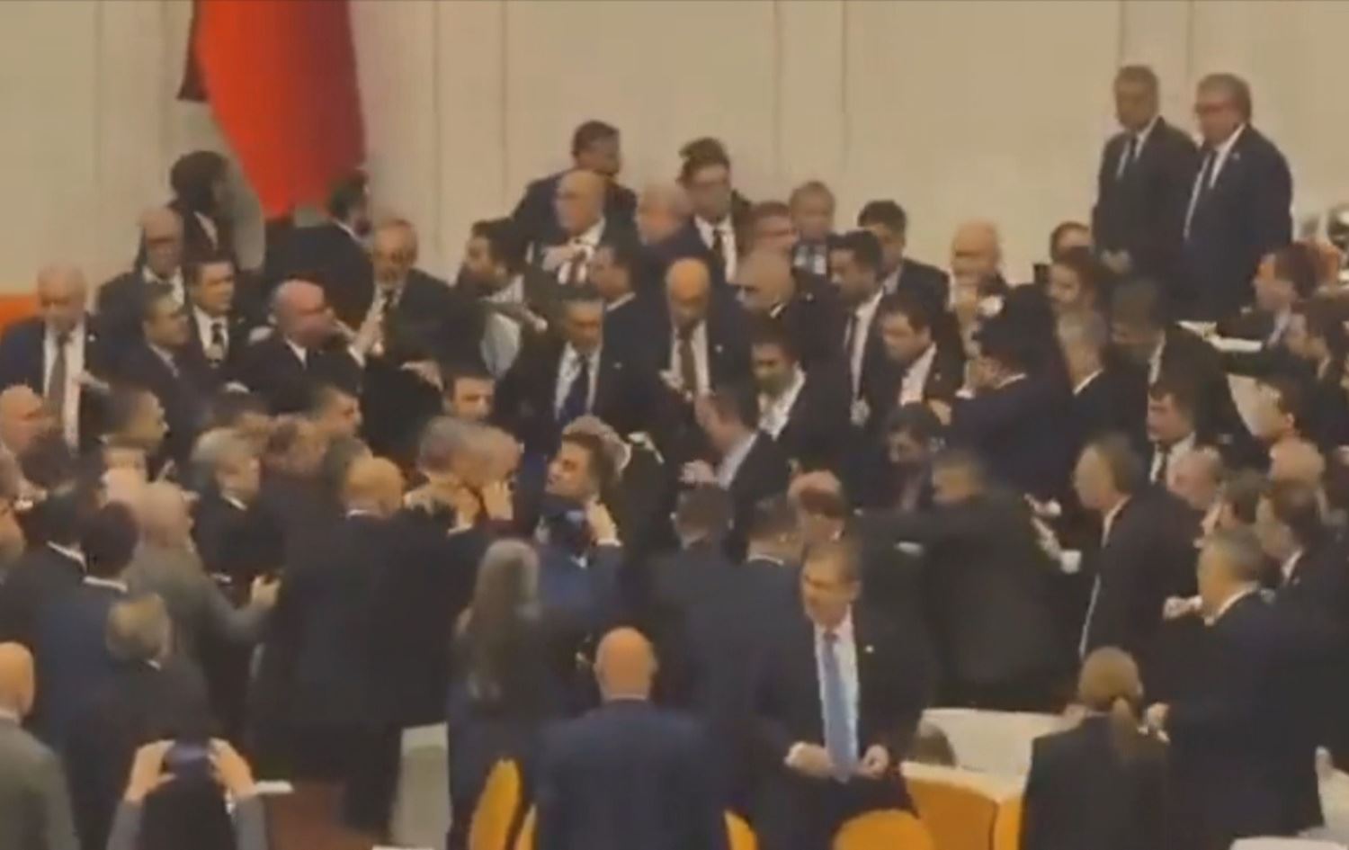 لە پەرلەمانی تورکیا گرژی و ئاڵۆزی لەنێوان پەرلەمانتارانی جەهەپە و ئاکپارتی دروستبوو و گۆڕدرا بۆ شەڕەبۆکس؛ هۆکارەکەشی بۆ رێگریکردن لە سوێندخواردنی وەزیرە نوێیەکانی کابینەکەی ئەردۆغان دەگەڕێتەوە.