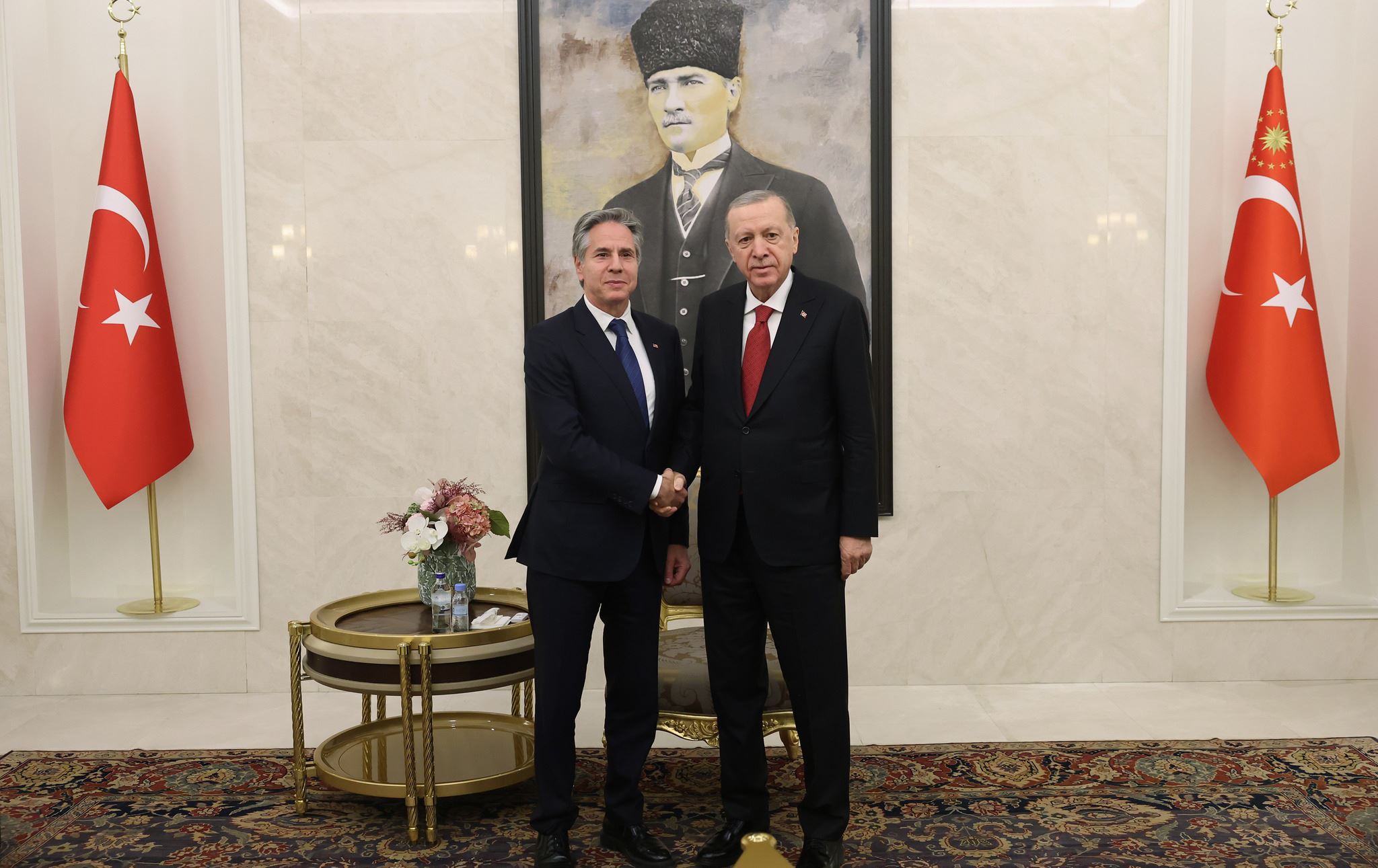 میدیای فەرمیی تورکیا بڵاویکردەوە، ئەنتۆنی بلینکن، بە یاوەریی شاندی وەزارەتی دەرەوە گەیشتنە کۆشکی بێشتەپەی سەرۆکایەتیی کۆمار. هاکان فیدان، هاوشانە تورکیەکەی پێشوازی لێکرد و دواتر چاوی بە رەجەب تەیب ئەردۆغان کەوت.