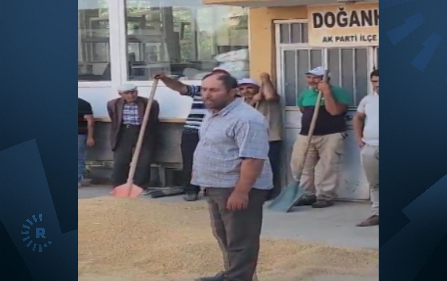 جووتیارێکی پارێزگای کۆنیای تورکیا، دوای ئەوەی گەنمەکەی لە سایلۆ وەرنەگیرا، رۆژی شەممە، 12-8-2023، بارهەڵگرێک گەنمی بردە بەردەم بارەگای ئاکپارتی و هەڵیڕشت.