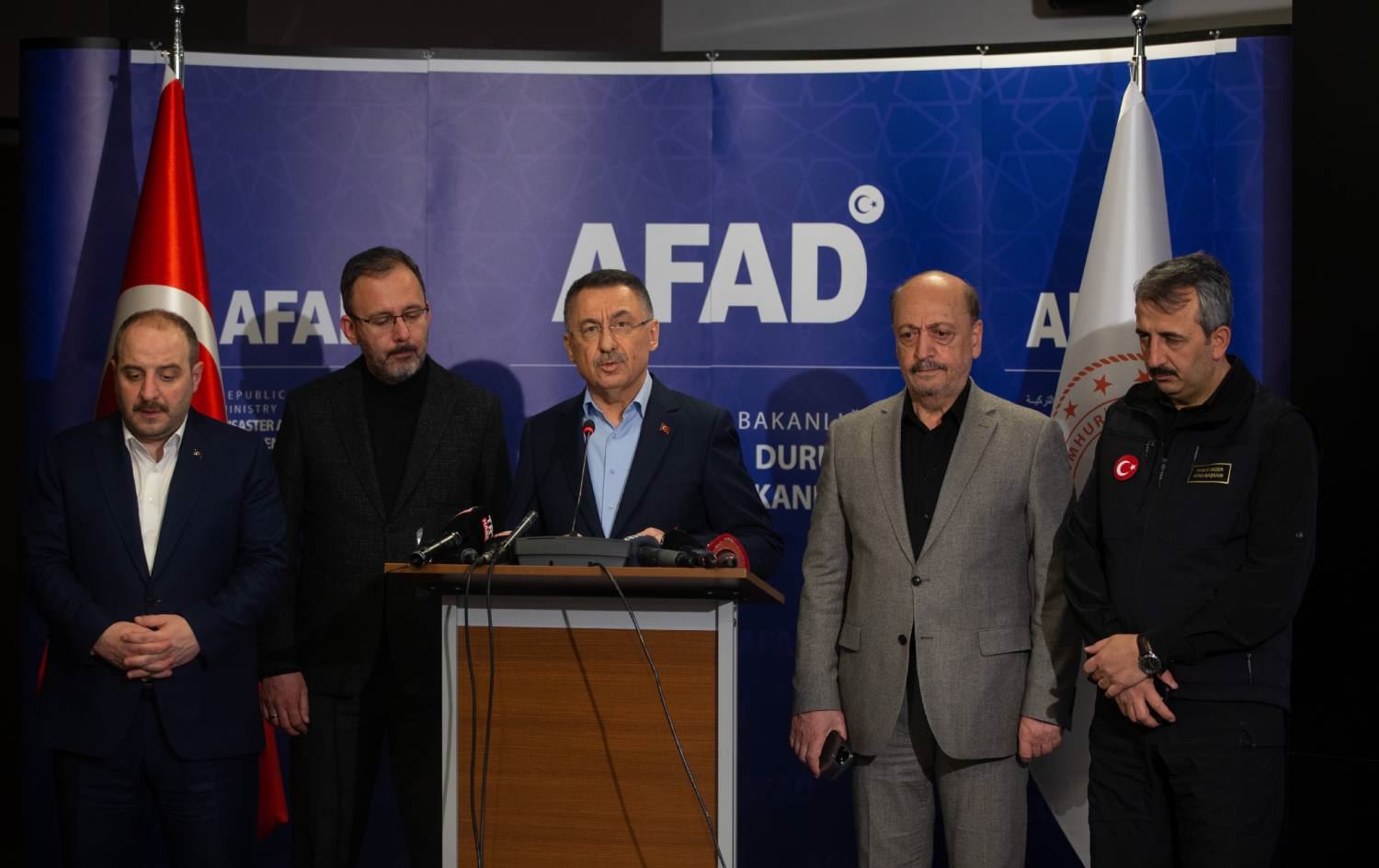 درەنگانی شەوی رابردوو 13-2-2023 هەریەک لە فوئاد ئۆکتای، جێگری سەرۆککۆماری تورکیا و مستەفا ڤارانک، وەزیری تەکنەلۆجیا و پیشەسازیی تورکیا و ڤێداد بیلگین، وەزیری کار و بیمەی کۆمەڵایەتیی تورکیا و محەممەد موحەڕەم قەسابئۆغڵو، وەزیری وەرزش و لاوانی تورکیا کۆنفرانسێکی رۆژنامەڤانییان لەبارەی دوایین پێشهاتەکانی بوومەلەرزە سازکرد.